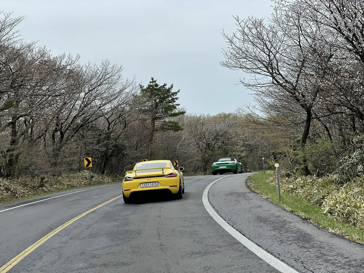 이번에 박스터로 달려보니 ‘이거다’ 싶네요. 무게 중심이 낮고 가운데로 모인 미드십 구성과 컴팩트한 차체, 대배기량 자연흡기 엔진의 느낌과 사운드. 그리고 흐리고 맑고, 산과 바다가 함께 있는 제주의 길이 만나 인생 드라이브 세 손가락 안에 올라갈 수 있었습니다.