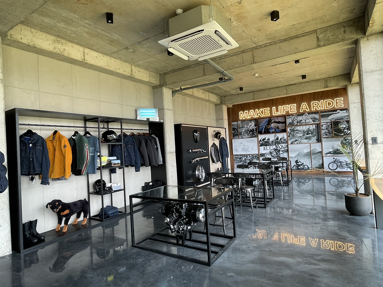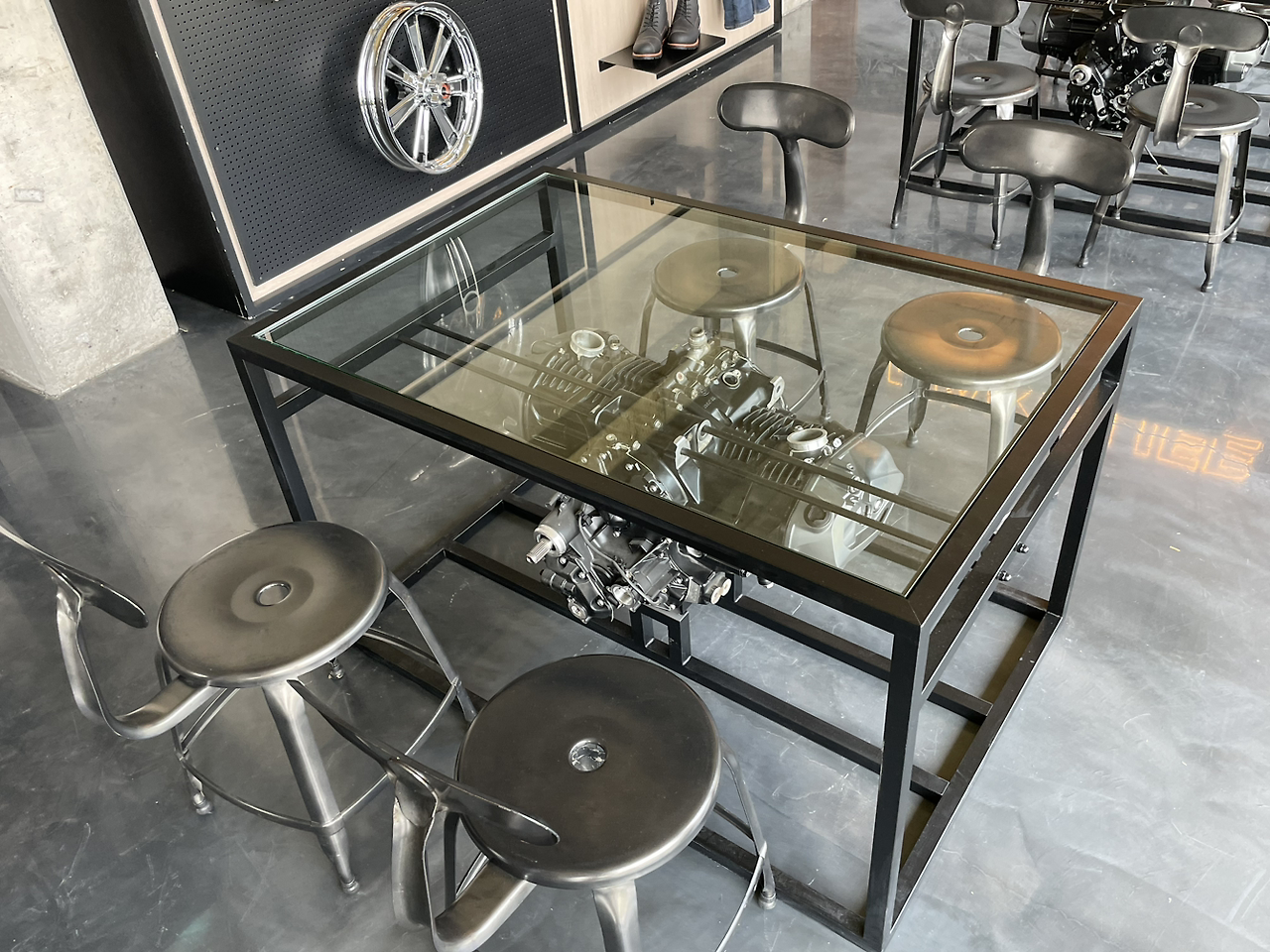 바다 바로 앞에 있어 걸리는 것 하나 없고요, 직접 만든 차와 음료 등을 제공합니다. 내부는 BMW 모터사이클, 그러니까 독일어로 모토라드의 여러 장면들로 가득합니다. 세계일주용(?)으로 알려진 GS는 물론 브랜드 상징인 수평대향 2기통 R엔진으로 꾸민 카페 등이 그렇습니다.