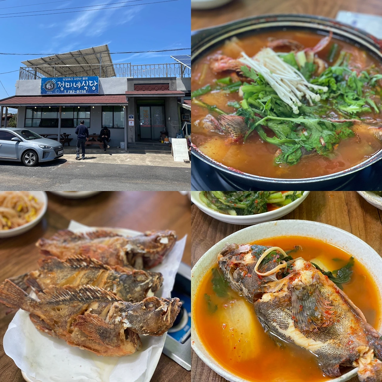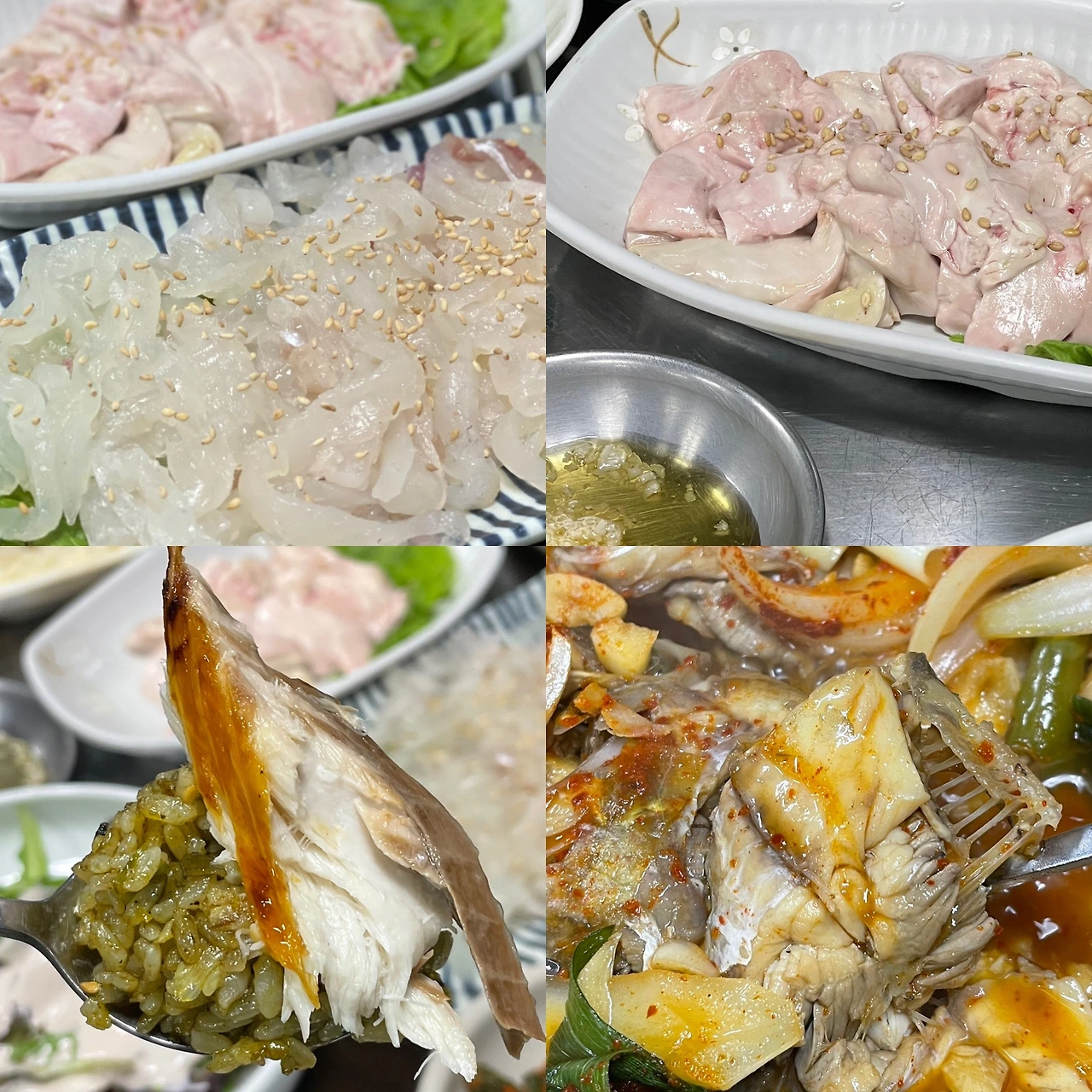 저는 첫날 저녁으로 강정에 있는 <당일바리> 식당에서 그날 잡은 쥐치 코스(회, 조림 등)를 먹었습니다. 간을 따로 모아 냈는데… 생선 간 특유의 부드럽고 고소함이 확 느껴지더군요.