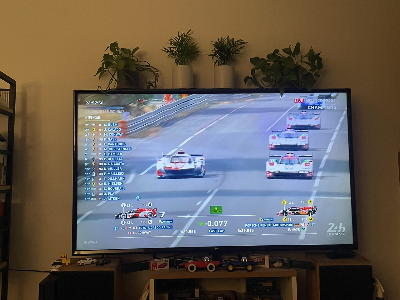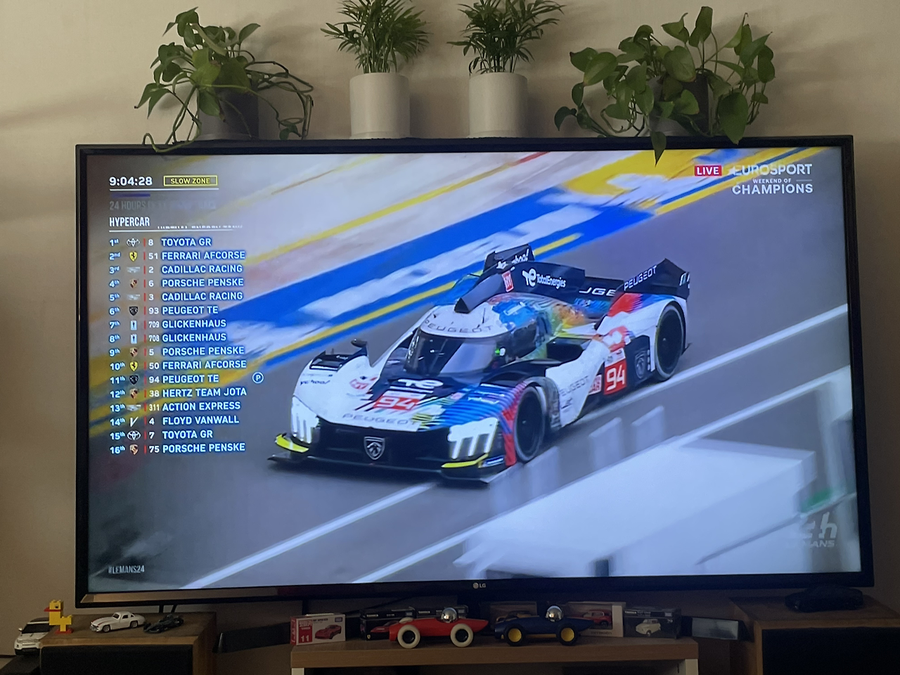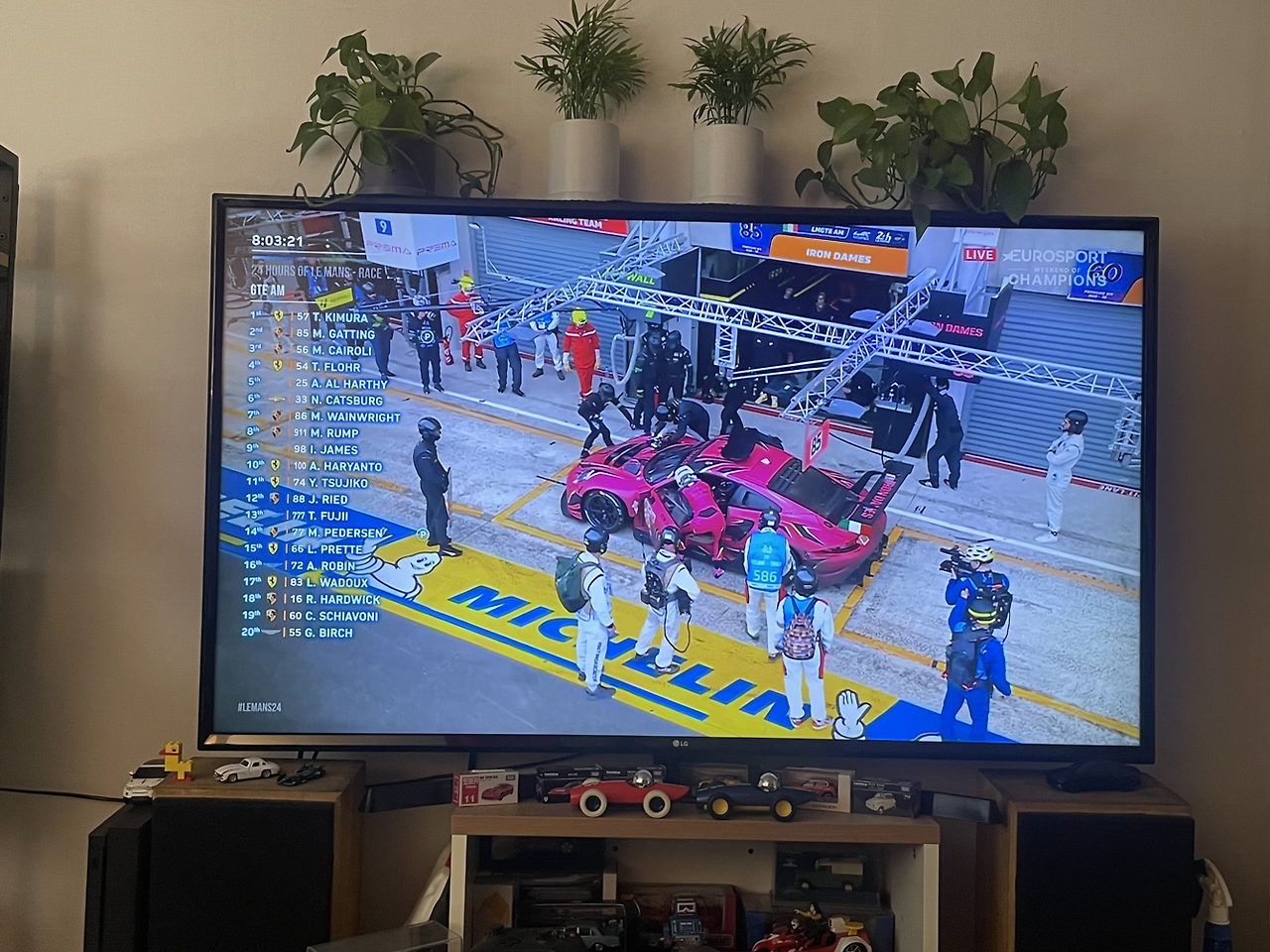 하이퍼카 부분에서 가장 억울한 건 토요타일 듯합니다. 5시간 남았을 때까지는 10~15초 정도로 2위를 유지했고 페라리 경주차가 피트에서 버벅거리는 동안 잠깐 선두로 나서기도 했으니까요. 그런데 스핀에 이은 사고로 부품 교체하느라 시간이 걸려 결국 우승에서 멀어졌습니다.