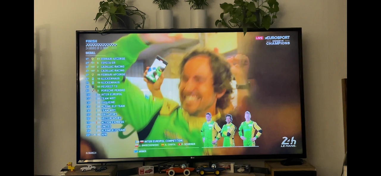 페라리는 1949년 첫 르망 우승이래 1965년까지 9번 타이틀을 차지했습니다. 영화 <포드 v 페라리>에서 포드가 우승한 해가 1966년이니 그 직전까지는 페라리의 시대였지요. 58년 만에 돌아와 바로 최고의 자리에 올랐습니다! 이번 우승으로 총 10회 종합우승을 차지한 회사가 되었다지요.