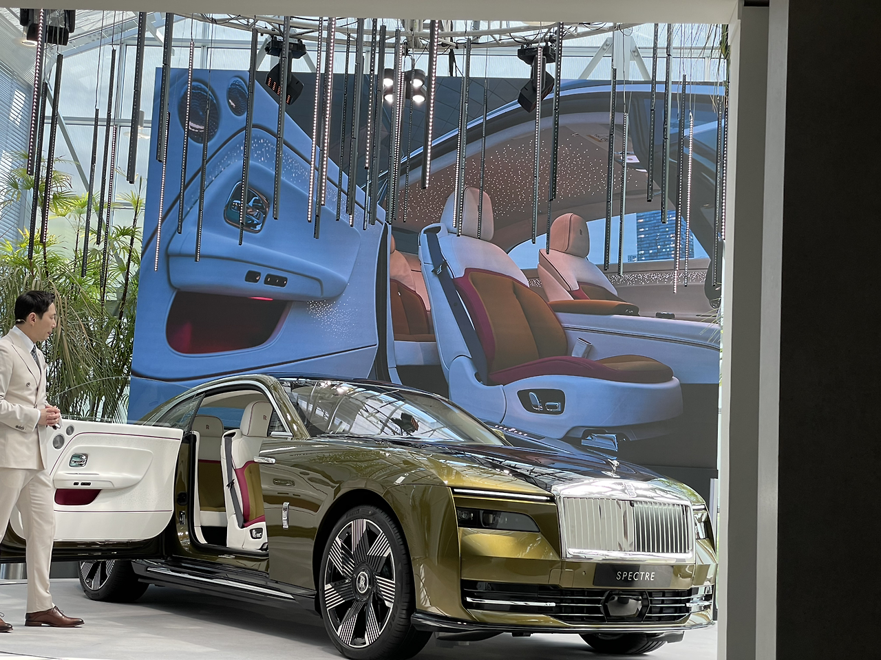 어제 국내 론칭한 롤스로이스 스펙터입니다. 한국 공개 행사를 위해 특별히 제작된 비스포크 모델 크레센도입니다.