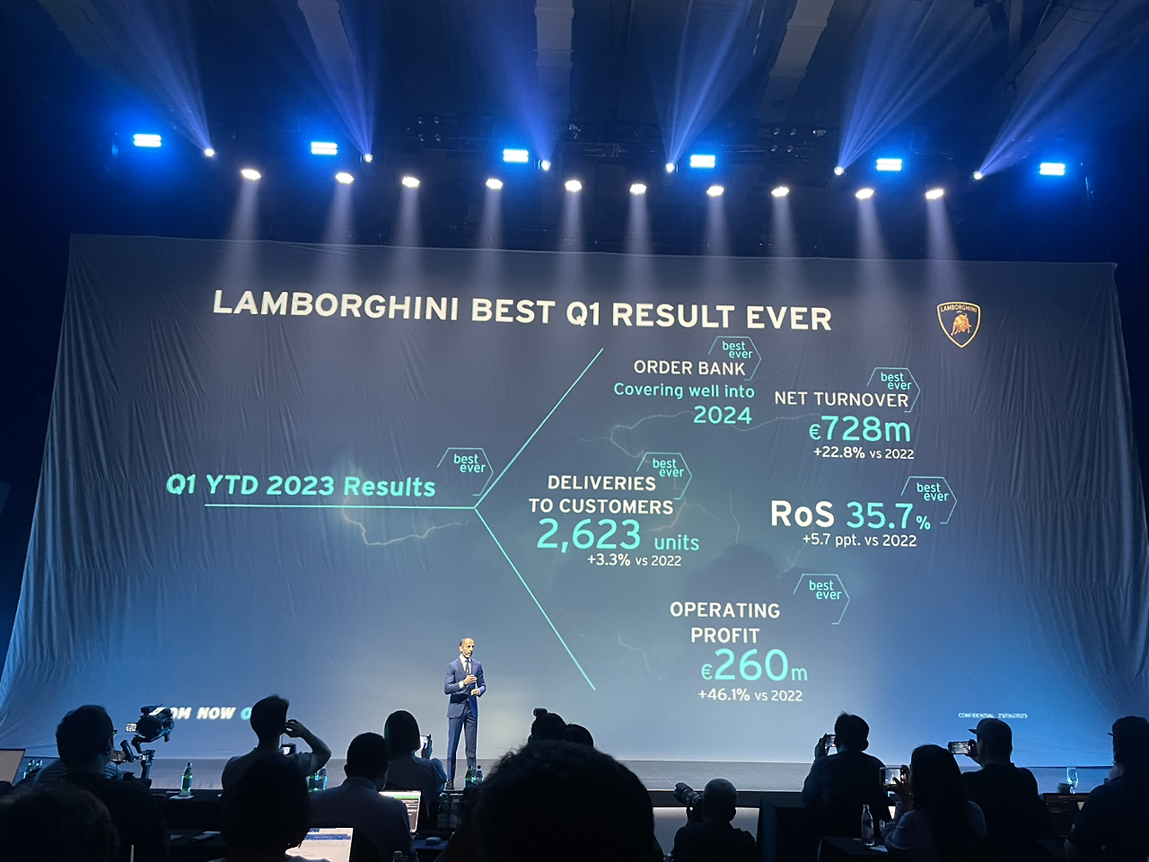 차만 공개한 행사라, 나중에 탈 기회가 있을까 싶기는 합니다만 발표에서 인상 깊었던 것은 프란체스코 스카르다오니 람보르기니 아시아퍼시픽 총괄의 실적 발표와 전동화 계획이었습니다.