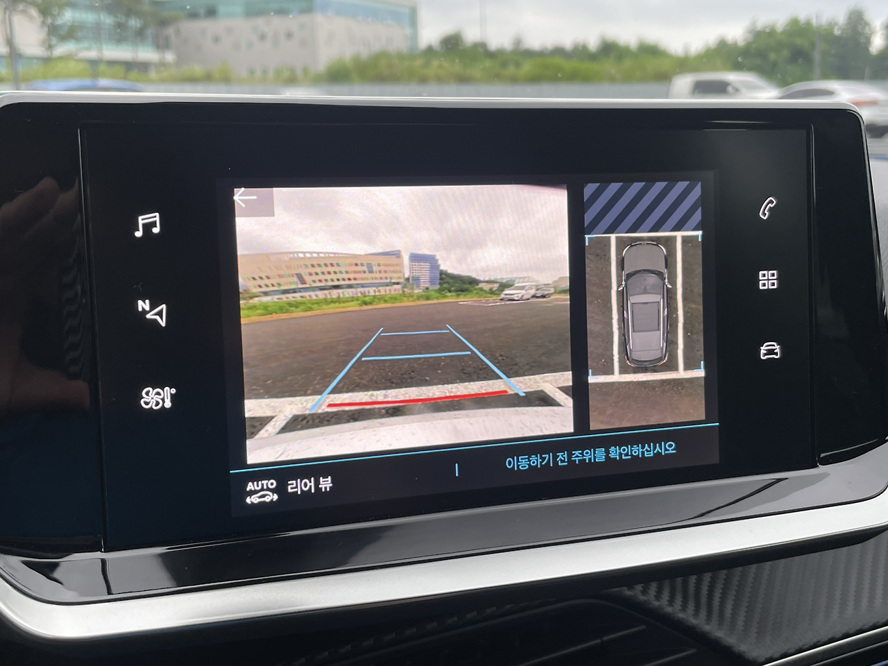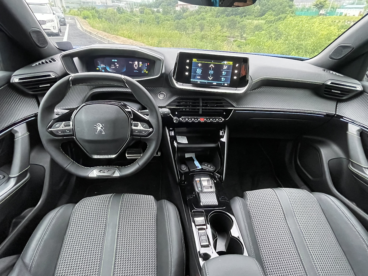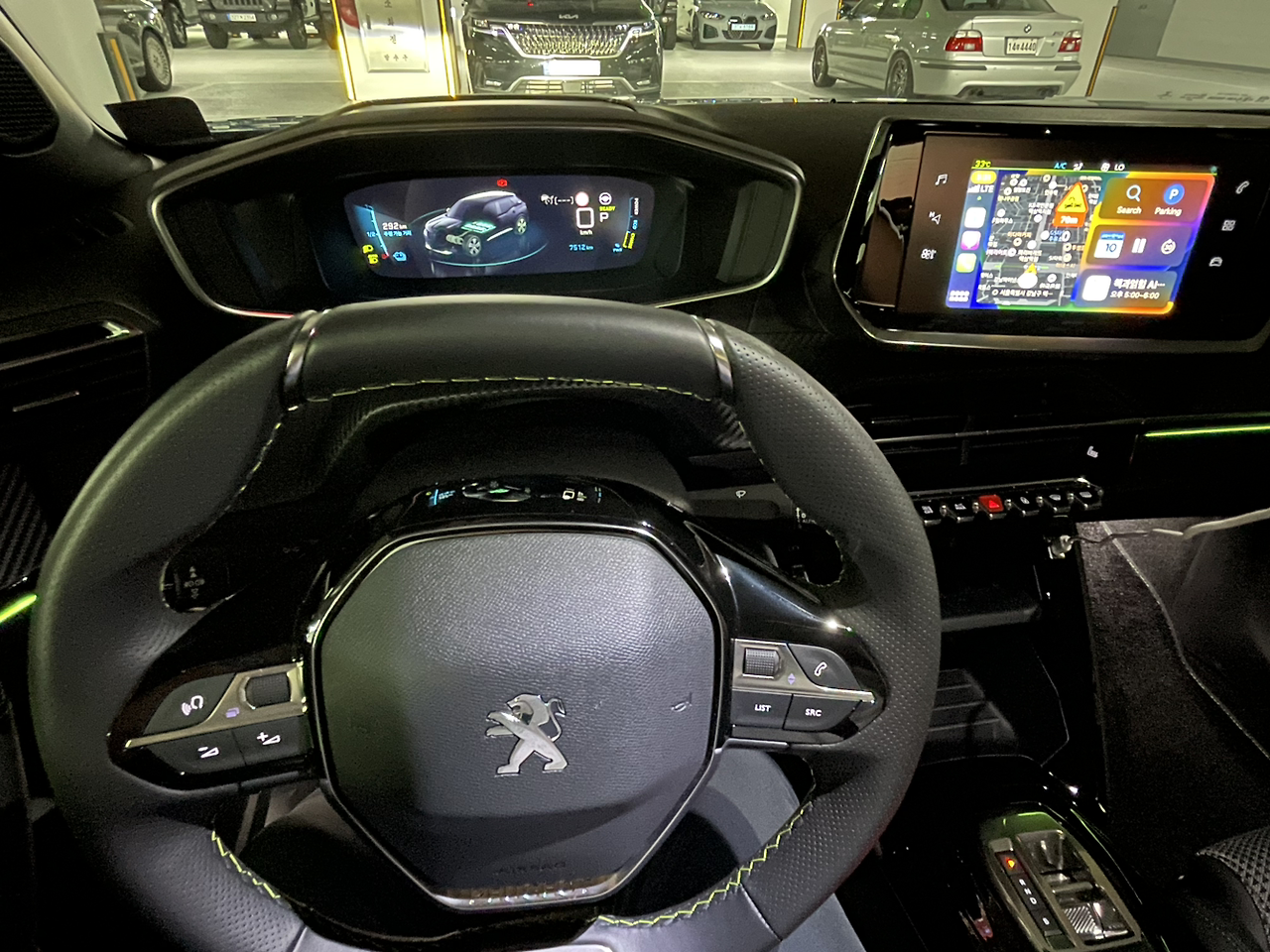 푸조는 i-Cockpit이라는 고유의 실내 디자인을 씁니다. 일반적인 자동차가 계기반을 운전대 사이로 보는 것과 달리, i-콕핏은 스티어링 휠을 작게 만들고 그 위로 전자식 계기반을 배치했습니다. 일반적인 자동차보다 운전대가 낮아 적응에 시간이 좀 걸리긴 하더군요. 센터의 AVN 모니터와 높이가 맞아 익숙해지면 편하고, 3D 형태로 다양하게 변형이 되어 신기하기도 합니다. 물론 2D의 단순한 모양도 가능합니다.