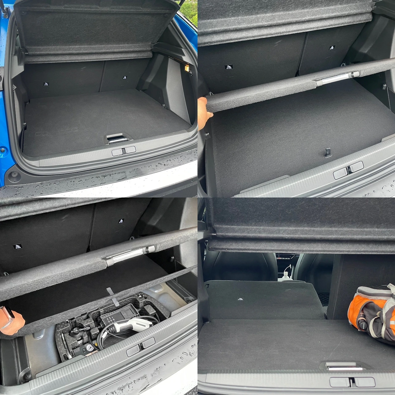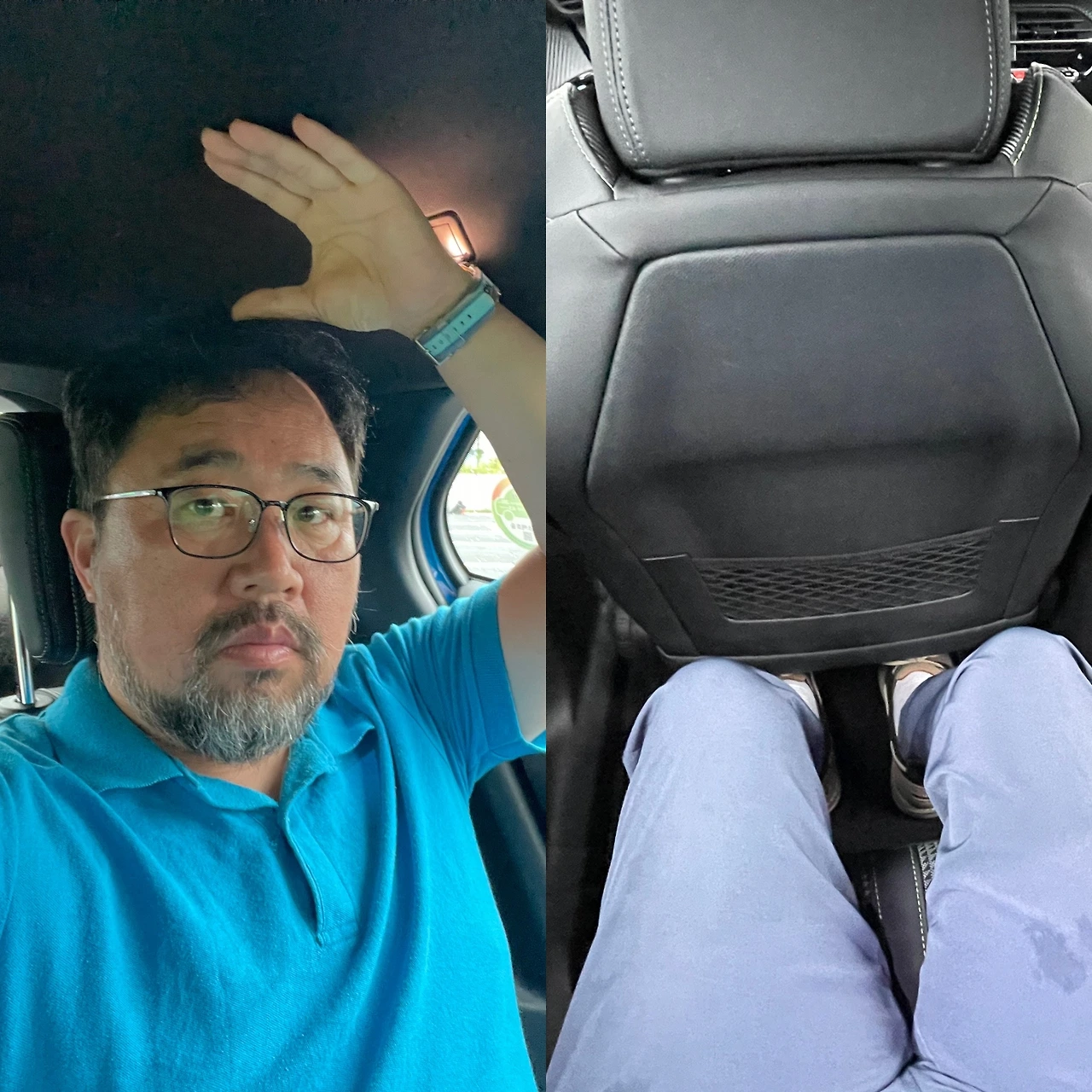 차만 놓고 보면 앞뒤 실내 공간이 부족하다 생각이 들진 않습니다. 특히 2열은 머리 공간이 넉넉하고 1열 시트를 바닥으로 낮춰도 발이 어느 정도 들어갑니다. 어른 4명이 타고 움직이는 것도 가능합니다. 트렁크도 2단, 정확하게는 3단으로 나뉘어 있어 활용도가 좋은데, 사람 타는 공간을 넓히기 위해서인지 안쪽으로 깊지는 않습니다. 그래도 20L 크기의 기내용 캐리어 등등은 쉽게 실을 수 있습니다.
