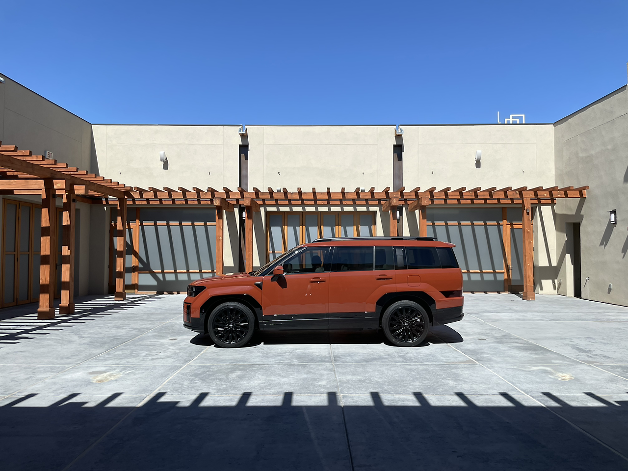 대신 존재감은 꽤 큽니다. 저는 지프나 랜드로버 같은 브랜드에서, 그 이전에는 <4WD&RV>라는 자동차 전문지에 일하며 SUV에 굉장히 익숙한데요, 새 싼타페의 형상은 전통적인 SUV의 타이폴로지(Typology)를 가져오며 꽤나 독창적인 부분들이 들어갔습니다. 그래서 닮은 듯 하지만 다른, 지나가는 차를 보면 ’저거 뭐지?‘라는 의문이 저절로 떠오르게 됩니다.