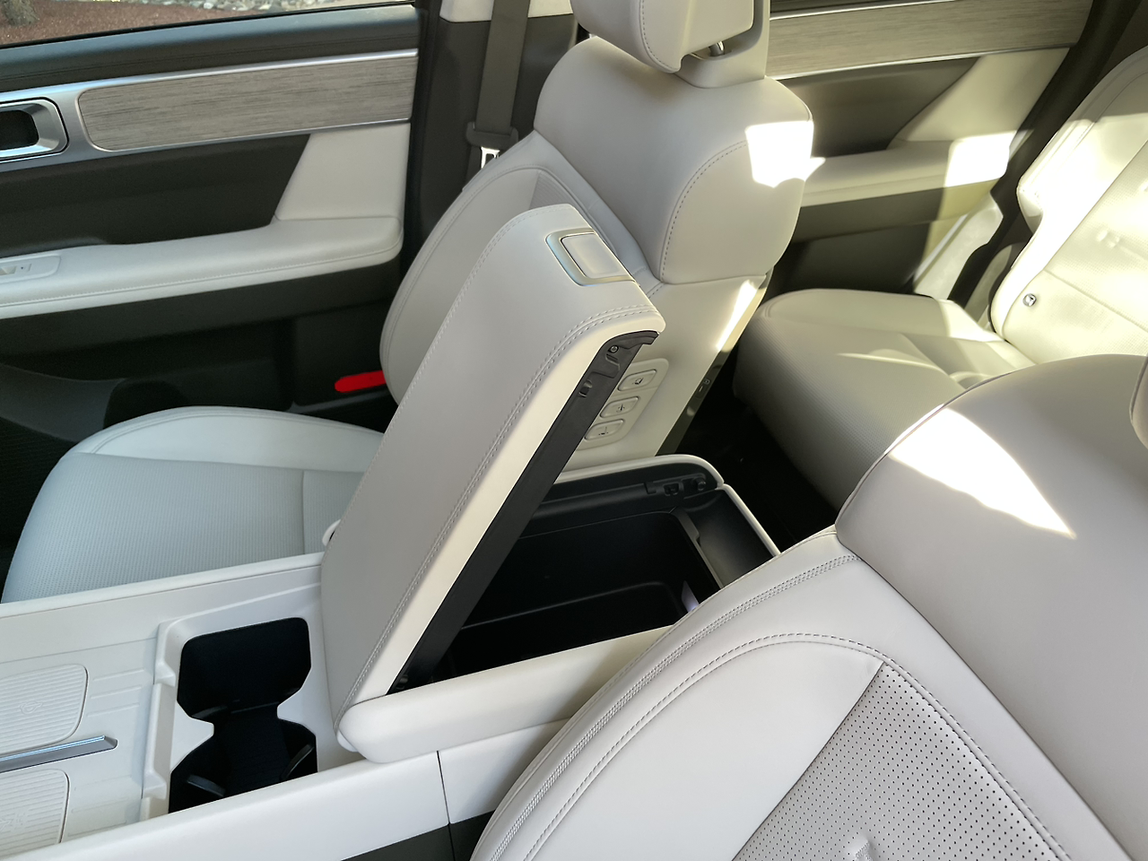 6인승의 2열 시트는 전동 조절이 되는데요, 슬라이딩/폴딩이 10초 안팎에 완성됩니다. 요즘처럼 덥거나 오늘처럼 비가 쏟아지는 상황에 2열 시트를 접느라 한참을 기다려야 할 필요가 없지요. 심지어 2열 엉덩이 쿠션 부분이 아래로 낮아져 트렁크와 거의 완전히 평평한 풀플랫이 됩니다. 차박을 하기 위해 이보다 더 필요한 기능은 없겠지요.