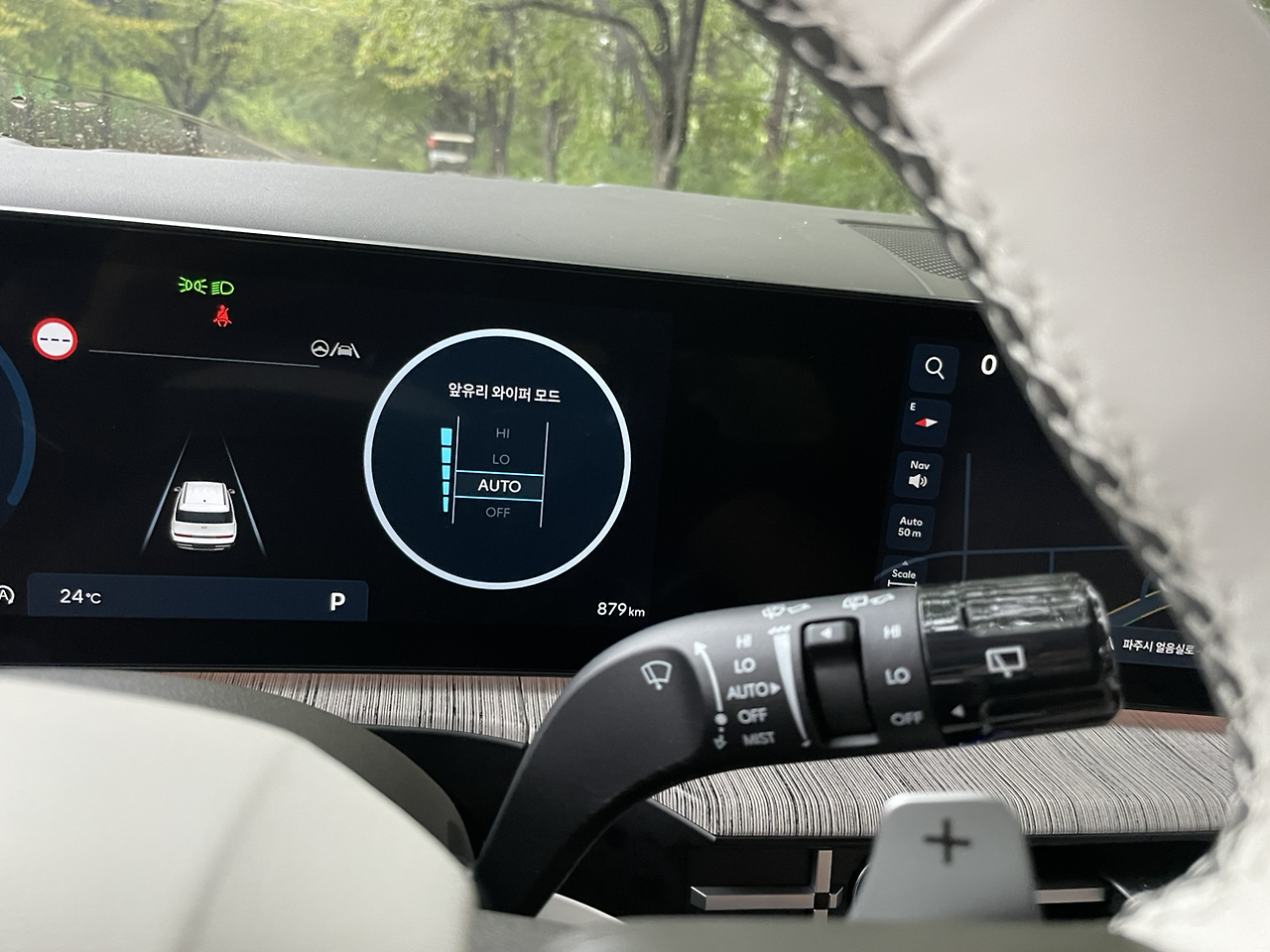와이퍼는 오토 모드에서도 작동 속도를 조절할 수 있습니다. 사진처럼 놓으면 차 속도나 강우량에 따라 더 빠르게 작동합니다. 저 레벨이 줄면 느려지고요. ‘우리가 정한 대로 써! 이게 정답이야!’가 아니라 ‘원하시는 대로 조절해 쓰세요’인 것이지요.