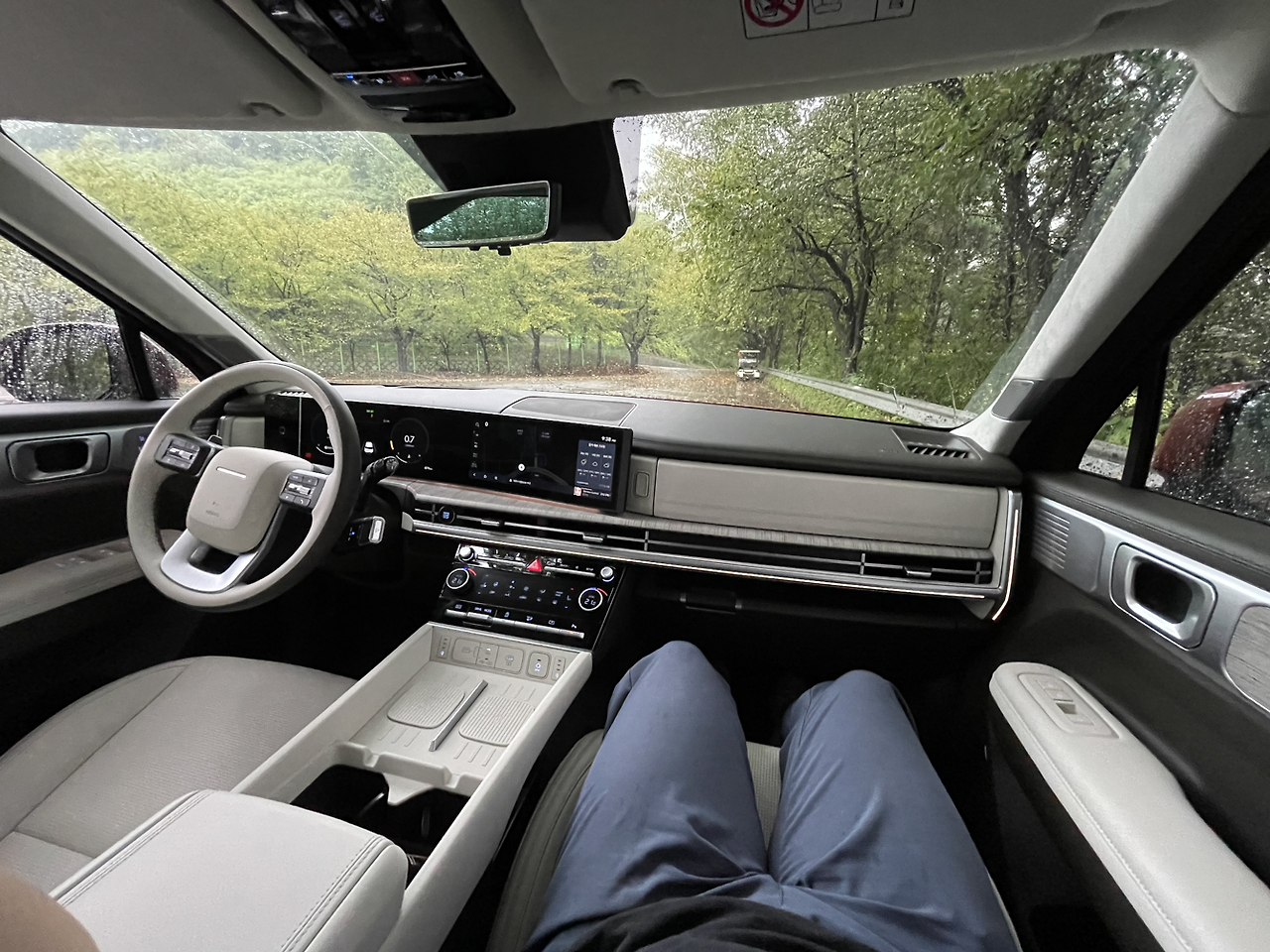 새 싼타페 시승 중입니다. 비가 많이 오는데 어쨌든 나왔습니다. 차근차근 둘러보니 재밌는 것들이 많네요.