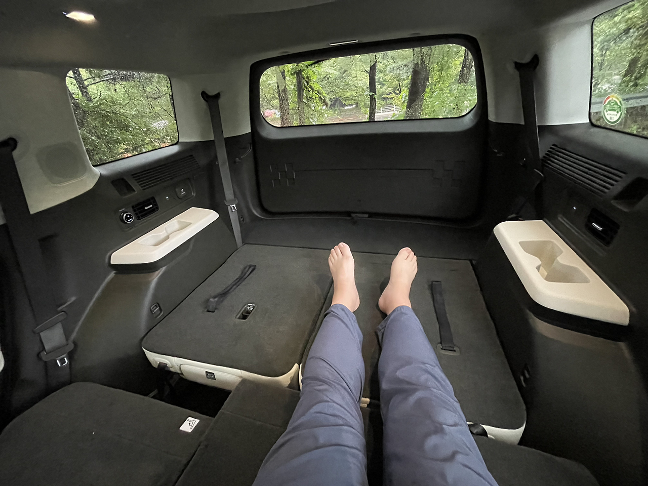 아무리 1/2열이 이래도 2/3열을 폴딩한 공간은 이기지 못합니다. 길이가 넉넉해 제가 누웠을 때도 매우 여유가 있고요, 180cm가 넘는 성인 남자도 충분할 것 같네요.