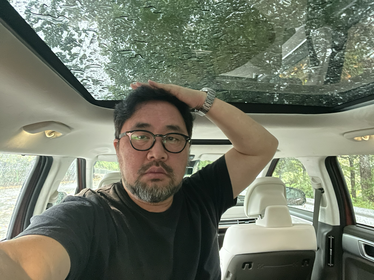 이렇게 누워 저 2열 선루프에 맺힌 빗방울이나 눈, 하늘을 보는 건 꽤 색다른 경험이지요. 요즘 텐트들 중에서도 천장이 투명하게 된 것도 많다던데, 펴고 접는 수고만 아니라면 싼타페 듀얼 선루프가 나을 듯합니다.