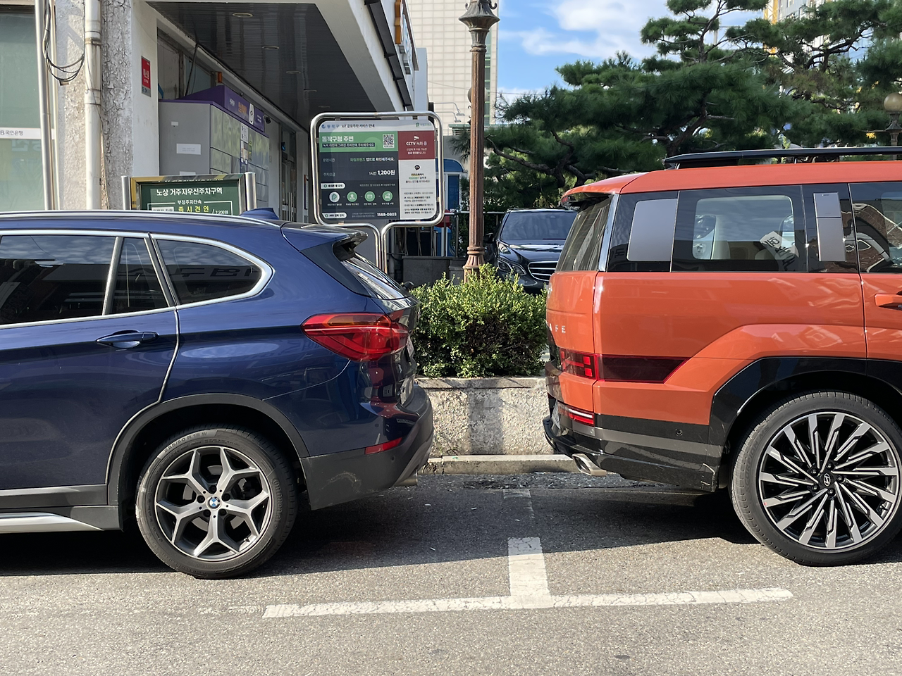 앞 사진의 흰색 주차선과, 위 사진의 오른쪽 상단 주차선을 비교하면 위치가 어디인지 더 잘 아실 수 있을 겁니다. 물론 익숙해지는 데는 시간이 걸립니다. 그래도 사용하는 데 불편은 없을 것 같습니다.