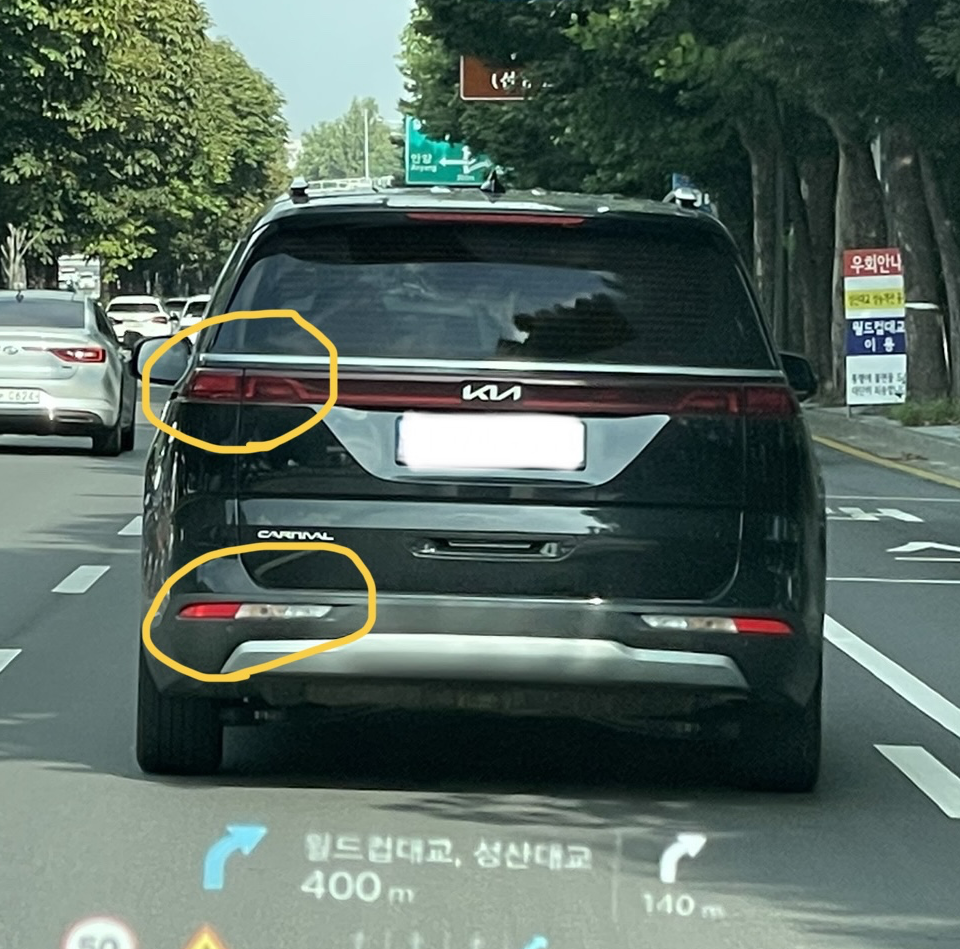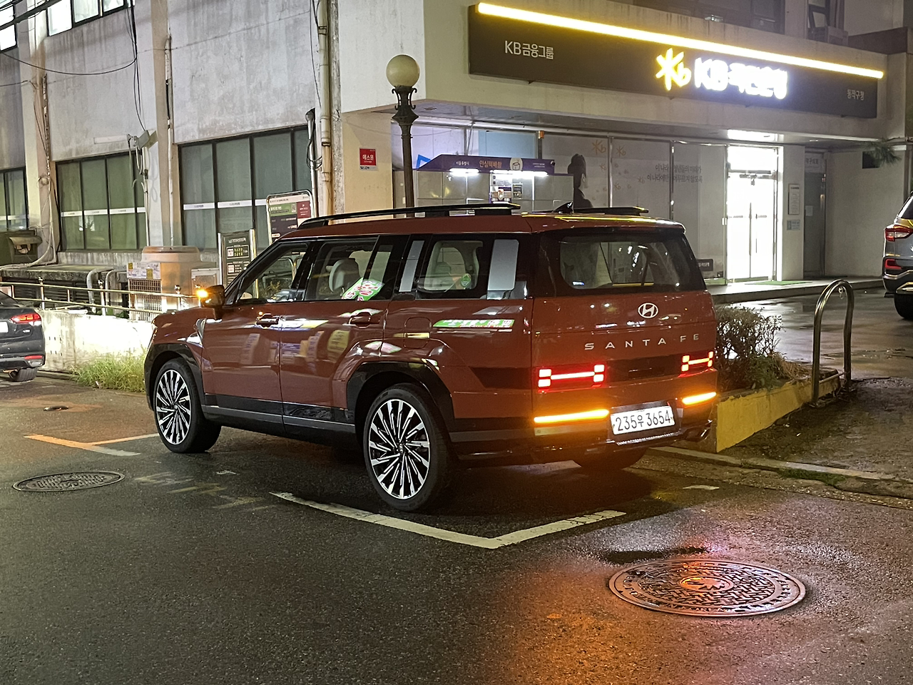 높낮이뿐 아니라 제동등과 방향지시등이 멀리 있어 시선이 나눠지거든요. 가까이 있는 싼타페는 이런 이슈가 없습니다.