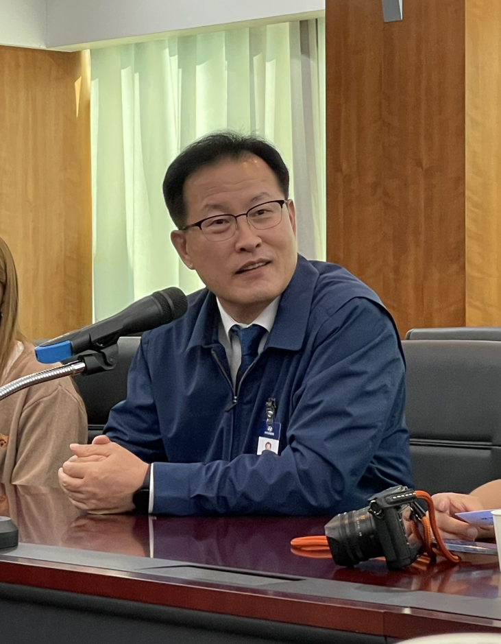 행사 시작하며 이곳 공장장이신 임만규 전무님의 소개도 있었습니다. 90년에 현대 상용차로 입사해 95년 전주 공장 설립에도 함께 하셨다고 하네요. 코나 등을 개발하시고 제네시스 생산 공장 등을 거쳐 최근에 다시 이곳으로 오셨답니다. 가장 집중하고 있는 분야가 전동화, 그중에서도 수소 연료전지를 이용하는 것이라고 합니다. 국가적으로 2050년, 현대차 기준으로 2045년에 탄소중립을 이뤄야 하는데 필수적이니까요. 또 중국이 내연기관 개발로는 기존 자동차 회사들을 넘어설 수 없으니 전기차로 곧장 가 우수한 실력을 갖추게 되었는데, 현재 60여 개 업체가 수소 연료전지 관련 사업에 뛰어들었고 몇 년 안에 따라잡을 가능성이 높기 때문에 지금 확실하게 세계 표준 등을 선점해야 한다는, 아주 중요한 이야기도 해주셨네요. 도로 주행이 가능한 실증 수소연료전지 전기 상용차를 운영한 회사는 아직 현대자동차 밖에 없으니, 이 격차를 유지하는 것이 중요하겠다 생각이 듭니다. 당연히 이를 위한 인프라 투자 등이 뒷받침되어야 하고요.
