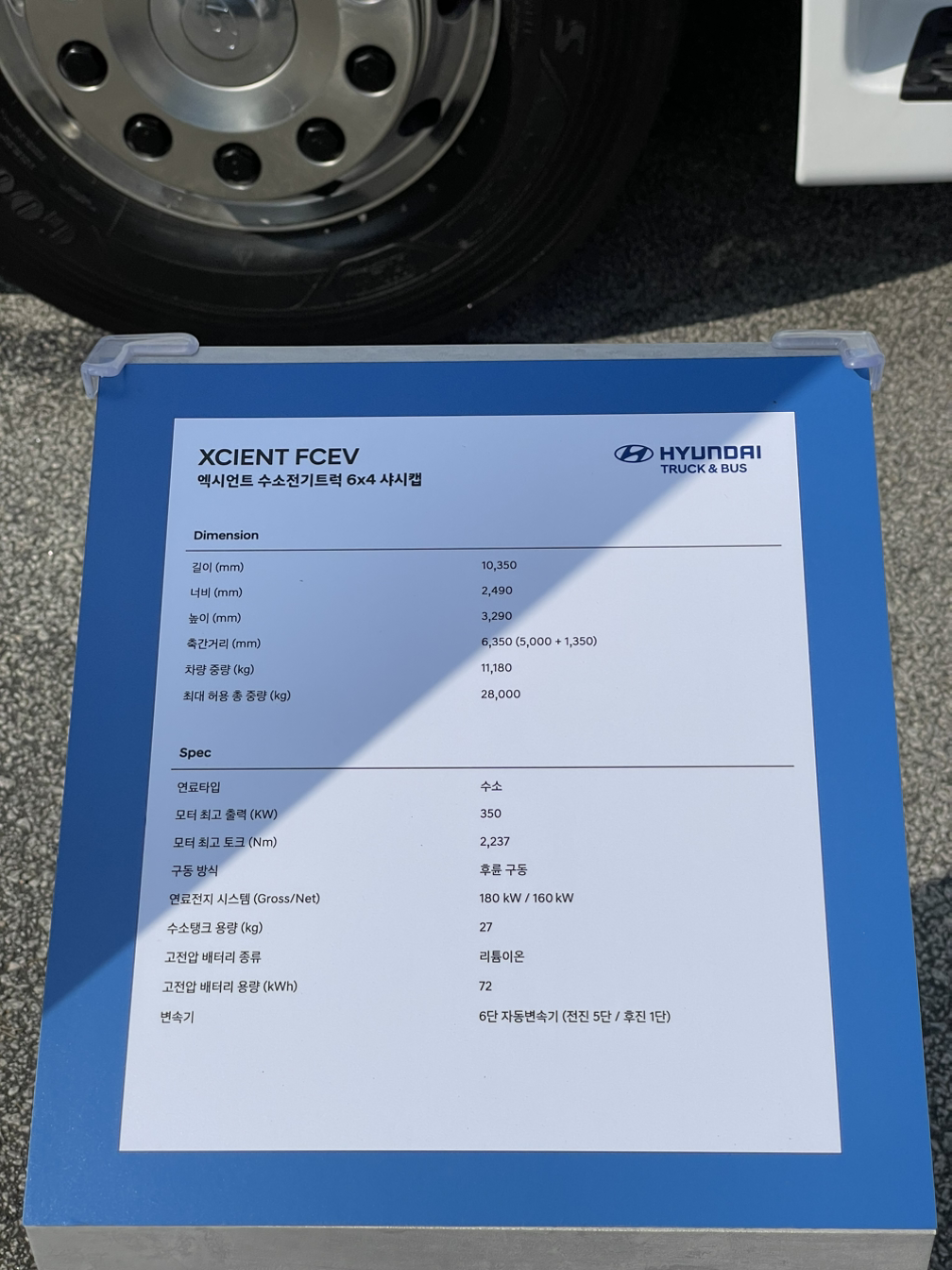 FCEV 섀시캡입니다. 유럽형이라 수소 탱크가 하나 더 들어갔다고 하네요. 크기에 비해 배터리 용량이 72kWh로 작은 건 당연히 연료전지가 발전하는 시간차를 메우고 회생제동으로 만들어진 전기를 저장하는 용도로만 쓰이기 때문입니다. 일단 대형 트럭이다 보니 굵직굵직 합니다. ㅎㅎㅎㅎㅎ