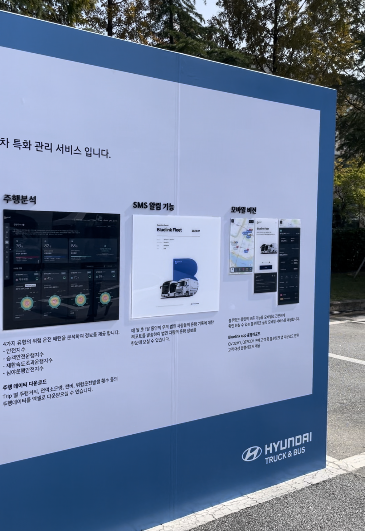 이건 블루링크 상용차 플릿 관리 시스템 설명입니다. 아시다시피 상용차는 운행 정보를 확인해 얼마나 효율적으로 돌리느냐에 따라 수익성이 달라지니까요. 꽤 다양한 정보를 주더군요.
