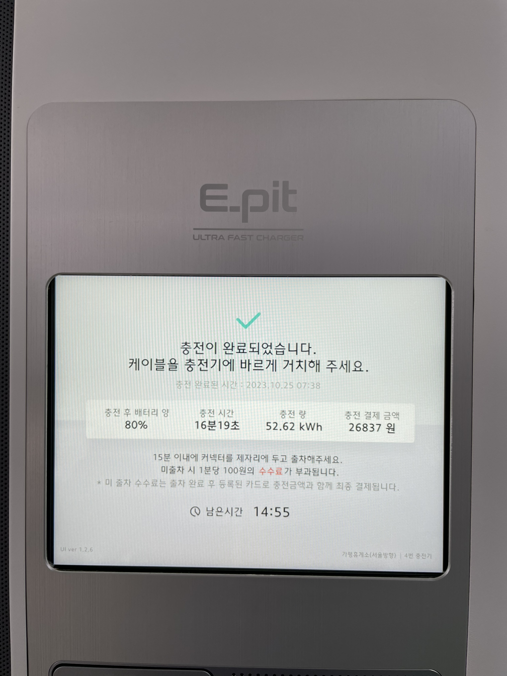 이피트의 초급속 충전은 더 빠릅니다. 최대 213kW로 80%까지 정말 빠르게 채웁니다. 16분 20초 동안 52kWh가 넘게 들어갔으니까요.