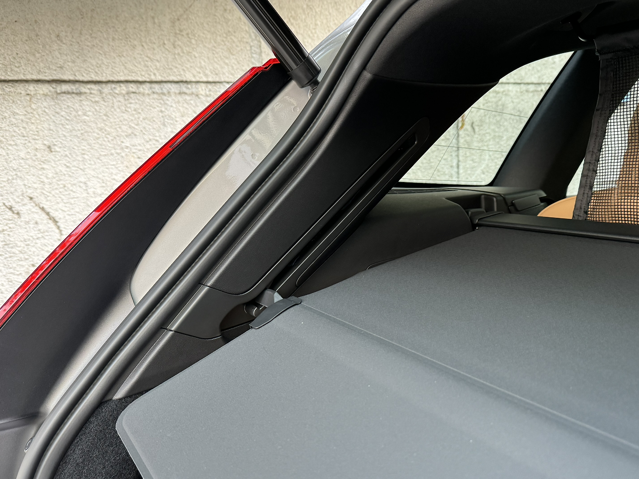 이걸 짐을 싣거나 물건을 꺼내며 안쪽으로 말아 넣는 것뿐 아니라, 볼보는 D필러를 따라 위로 올라가도록 레일이 있습니다. 이 사진이지요. 더 쉽게 쓸 수 있는 방법입니다.