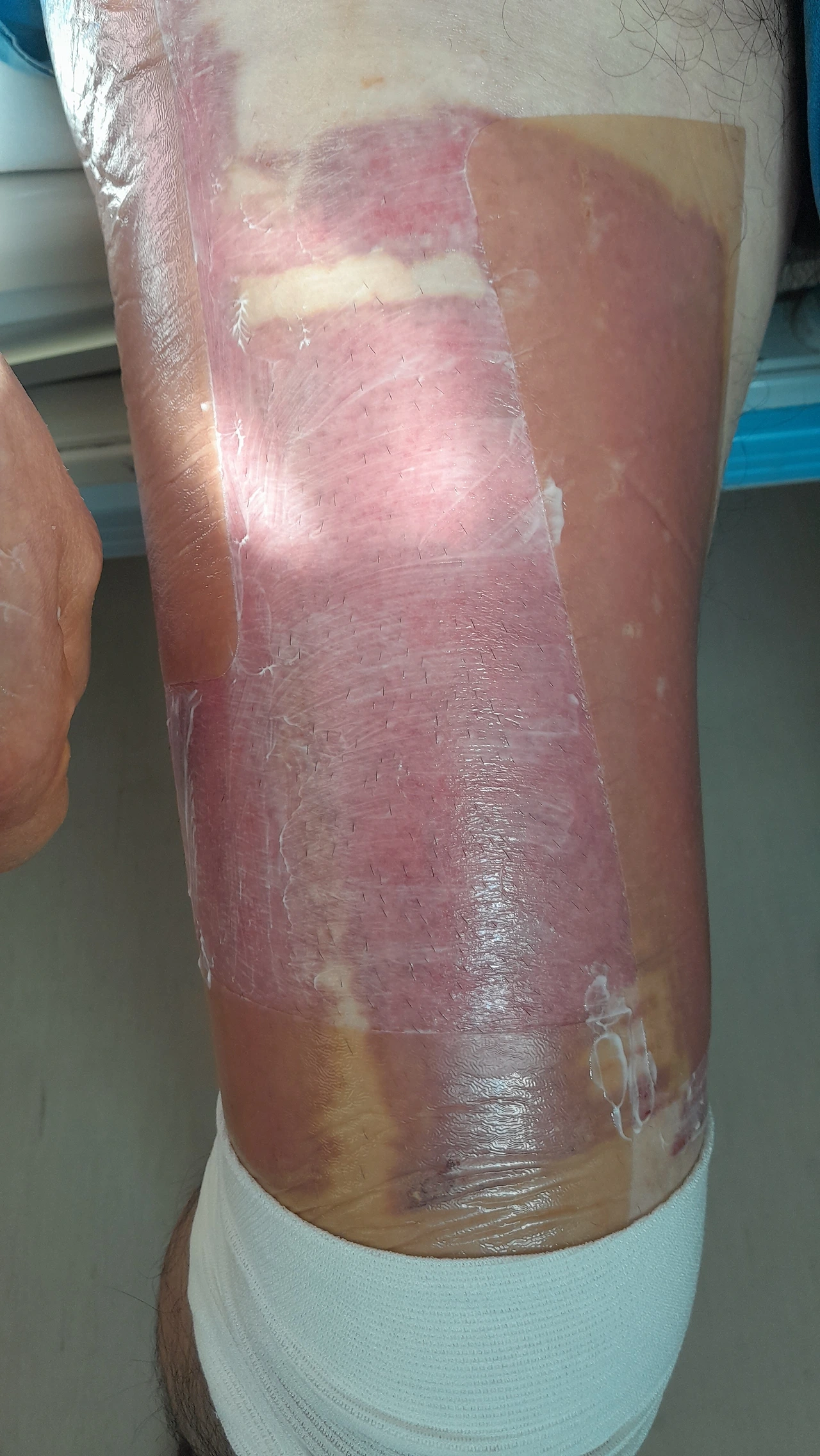 이식수술을 위해 피부를 떼어낸 허벅지 부위
