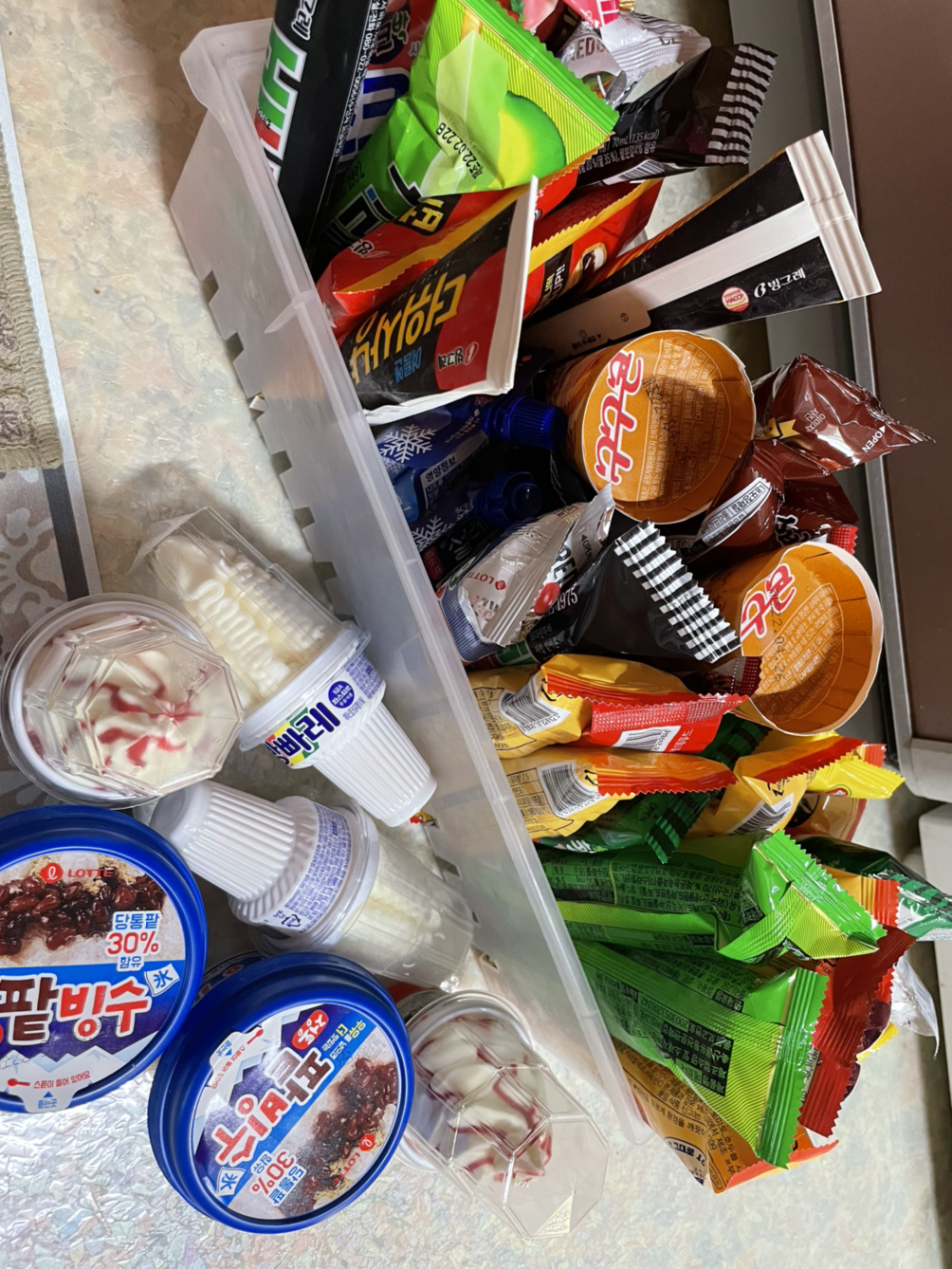 서울에선 냉장고도 작고 돈을 아끼느라 먹을 만큼만 사다 두는데, 김천에 오면 차가운 아이스크림에서 가족들의 품을 느낀다.