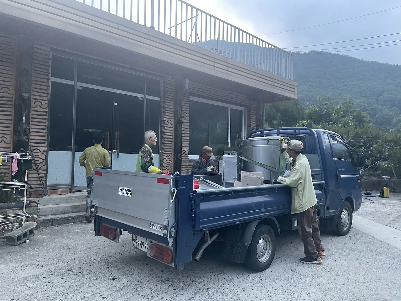 6번(이모부) : 채밀기에 벌집 꽂기. 말통 싣기