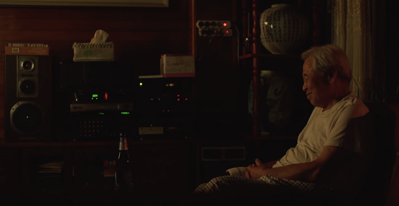 연출적으로 가장 인상 깊었던 점중에 하나는 술에 취한 할아버지가 밤에 음악을 크게 틀어 놓고 미소를 지으며 음악을 감상하는 장면을 목격한 옥주가 할아버지에게 말을 걸지 않고 뒤돌아 계단에 앉아서 함께 감상하는 장면이었습니다. 화면을 왼쪽과 오른쪽을 나눠서 시퀸스를 잡는데 마치 대화를 하는 것 같은 연출이라고 할까요. 그리고 두번째로 장례식장에서 할아버지영정 앞에서 가족들이 정면으로 한명, 한명 밥을 먹고 있는 것을 비추는 시퀸스는 영화적으로도 깊이 있는 연출이 아니었을까 하는 생각이 듭니다. 말 그대로 '식구' 인 것이죠. 할아버지와 가족들이 함께 식구로써 존립하고 있다는 것을 강조하는 의미를 담고 있다는 생각을 하게 되었습니다.