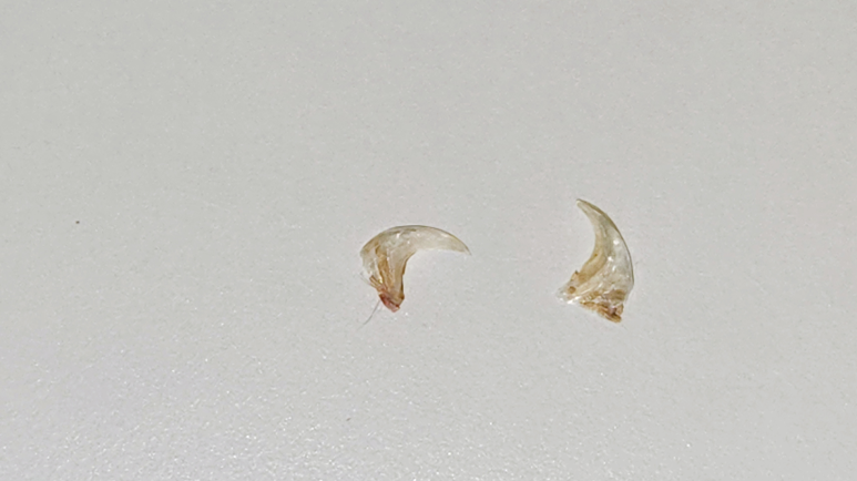 집사들이 방을 청소하다가 고양이털을 발견했다거나, 혹 운이 좋은 경우 고양이 수염을 발견한다는 것은 익히 들어 알고 있었다. 하지만 오늘 송이의 방에서 생각지도 못한 물체를 발견했다. 바로 고양이 발톱이다. 어제 구조자 아저씨와 (송이 기준) 죽음의 술래잡기를 할 때 얼마나 놀랐으면 발톱까지 빠졌나 싶어 안쓰러웠다. 어제의 일이 하루빨리 송이의 기억 속에서 지워지길 바라며 하루를 시작했다.