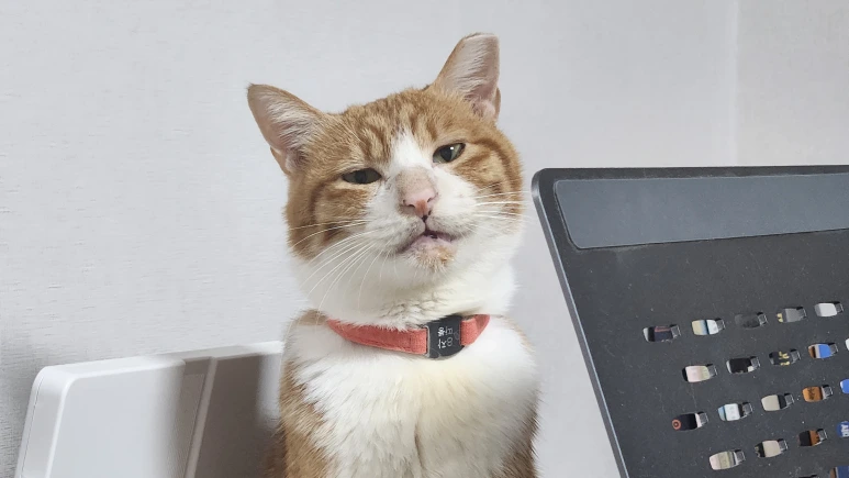 확실히 따봉이가 나에게 마음을 연 것이 확실한 것이, 내가 책상 앞에 앉아있을 때마다 같이 책상 위로 올라와 망부석처럼 앉아있다. 애인은 책상에 자동급식기가 있기 때문이라고 하지만, 나는 아니라고 생각한다. 왜냐하면 따봉이는 항상 내 앞에 앉아있으며 눈키스를 날리거나, 책상 위가 아니라면 책상 밑에서 나를 바라보기 때문이다. 너무 억지일 수도 있지만, 분명 따봉이는 내 곁에 있고 싶어서 앉아있는 것이다.