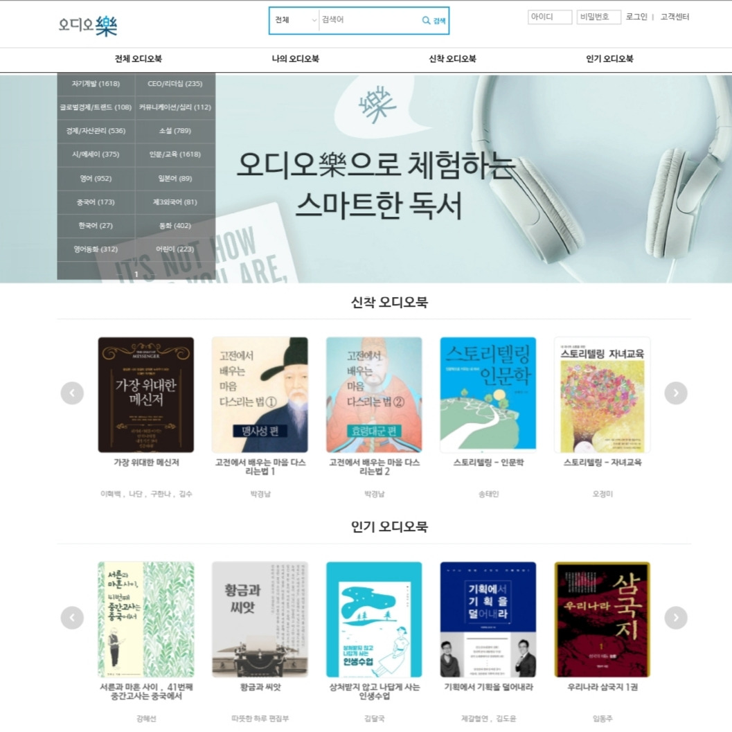 도서관 회원 가입 후 이용할 수 있는 '오디오락'