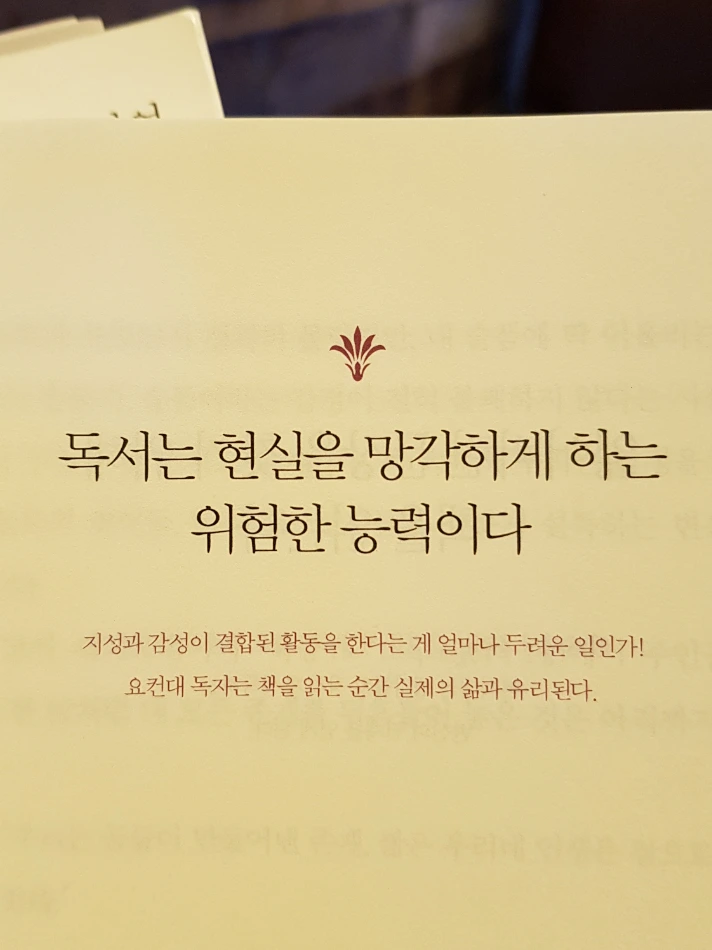가끔 “책 재밌어요?"라는 질문을 받습니다. 그런데 대답도 하기 전에 다시 질문자는 이야길 합니다. "나도 책 좀 봐야 하는데…”라고요. 그 순간의 표정이 다들 좋진 않으셔서 괜스레 미안할 때가 있습니다. 책 추천이나 내용에 관한 질문을 받기도 하는데 책을 다 읽고 나선 주인공 이름도 생각나지 않을 때가 많아서 스스로 ‘책을 왜 읽는가’라는 고민을 오랫동안 하고 있습니다.