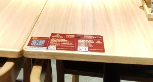 식당 자리에 부착된 주문과 결제용 QR코드