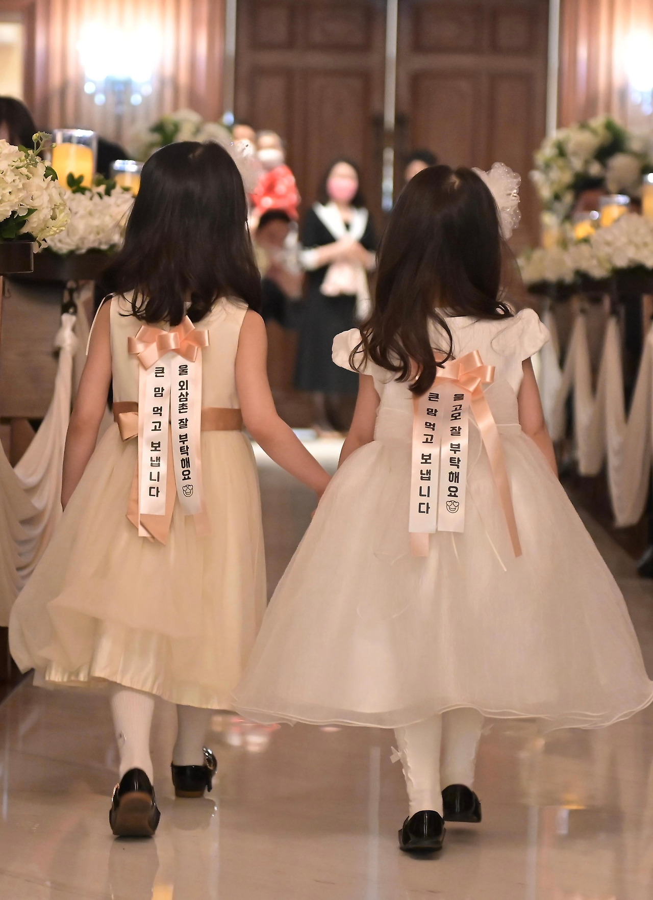 우리가 정의한 식의 의미는 가족과 가까운 사람들 앞에서 부부가 됨을 다짐하고 기념하는 것이었고, 이 과정에 가족들과 찐친들의 행사 참여율을 높이고 싶었다. 양가 어머니의 화촉점화와 양가 아버지의 짧은 인사말로 식을 시작하고, 양가 조카들이 나란히 화동을 하고, 신랑 신부의 가까운 친구들이 축가-축사-축무를 함께하길 바랬고, 서로의 추억으로 남기고 싶었다.