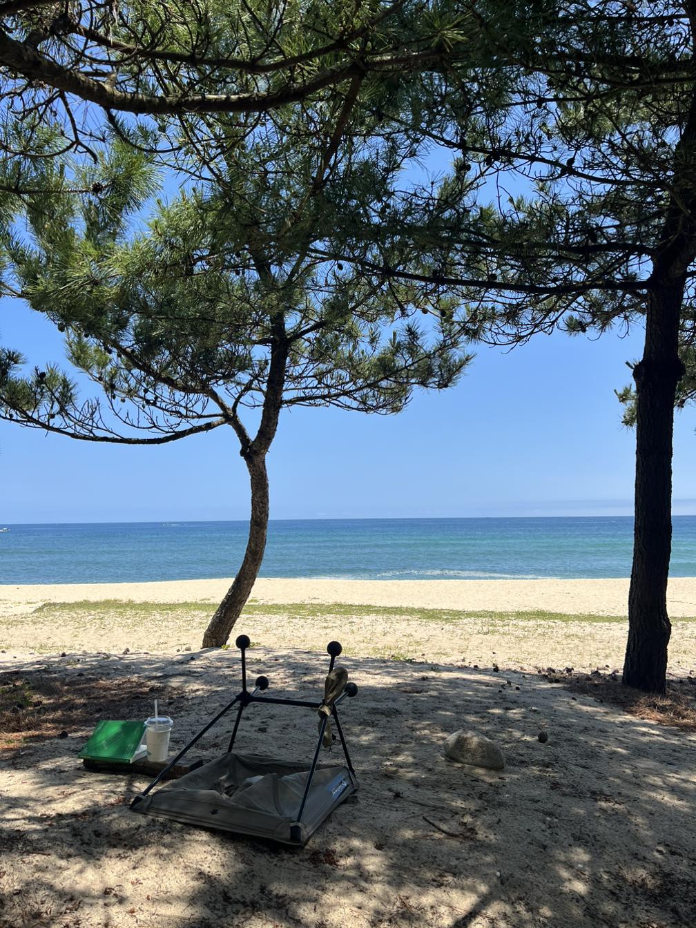 주말엔 아침부터 강릉 한 바퀴를 바삐 돌았다. 이동은 주로 대중교통을 타고 걸어 다녔는데, 자동차를 타고 다닐 때 보지 못한 것들을 꽤나 많이 발견한다. 그 중 귀엽고 인상적인 것들은 스마트폰 네모 화면에 촬영버튼으로 담긴 하지만 그땐 피사체를 향해 고개를 90도로 들어 주었다(?) 예전부터 가고 싶던 카페와 그 앞에 해변을 거닐 상상을 하며 열심히 찾아갔다. 도착한 목적지에선 간단한 다과를 주문하고 새 책을 곁들이는 시간이 꽤나 행복했다. 올해 들어 가장 행복한 시간이 아니었을까. 2차로는 바다에 가서 캠핑 의자를 피고 다시 책을 펼쳤다. 소나무 사이로 부는 바람과 촘촘한 활자에 집중하다 고개를 들면, 시퍼런 바다로 눈이 시원해지는 시간도 여유 지고 행복했다.