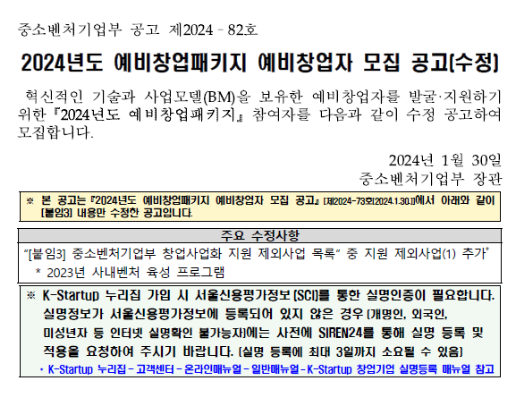 자, 이제 공고 내용을 살펴볼 차례다. 다음 챕터에서 항목별로 더 자세히 다루겠지만, 우선 전체적인 흐름을 파악하는 게 중요하다. 그래서 이번에는 일반적인 공고 내용을 처음부터 끝 페이지까지 쭉 훑어보자. 여기서는 가장 많이 알려진 '예비창업패키지'의 양식을 기준으로 설명할 텐데, 이를 통해 우리가 주목해야 할 사항들을 파악하고, 어떻게 이를 전략적으로 활용할 수 있을지 알아보겠다. (다른 기관들의 공고도 이와 비슷한 형식을 따르기 때문에 큰 차이는 없다.)
