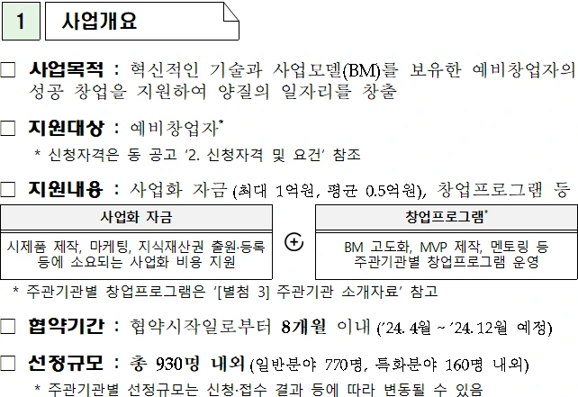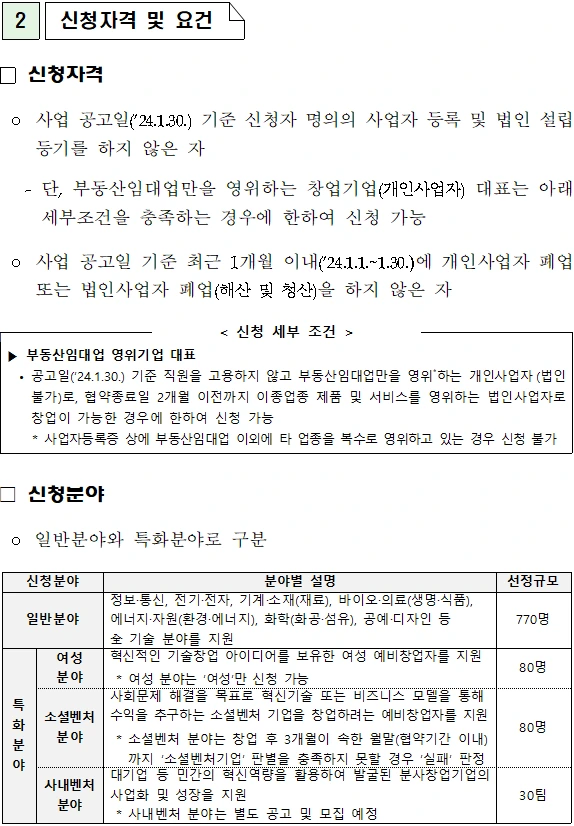 일반적으로 예비 창업자를 위한 정부 지원 사업의 경우, 개인 사업자가 있으면 신청 대상에서 제외된다. 다만 예외가 있는데, 부동산에 한정해 불가피하게 사업자가 있는 경우는 허용된다. 이러한 내용은 공고문을 통해 쉽게 확인할 수 있으니 생략하자.