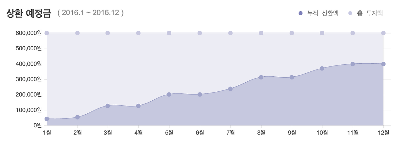 > 좌) 총 투자액 대비 누적 상환액을 그래프로 제공