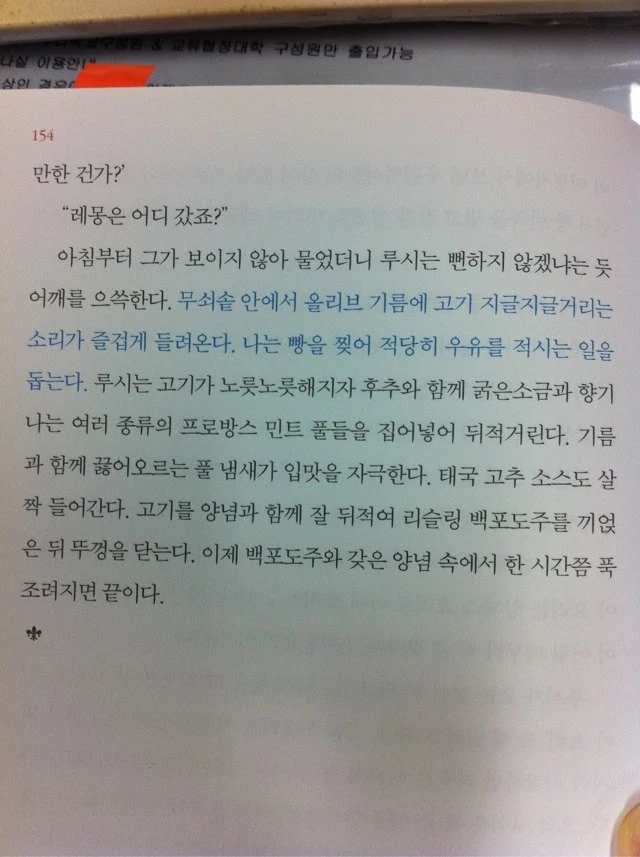 10년 전에 찍어뒀던 문장인데, 작가 신이현이 프랑스와 독일 국경의 시골 마을 알자스에 사는 시부모의 주방과 텃밭을 경험하며 이들의 음식과 술에 관해 쓴 책 <알자스>의 일부다. ‘올리브기름에 조린 닭 요리’가 메인인데, 여기에는 우유 빵 요리를 곁들여 먹는다고 한다. ‘썰지 않은 우유 빵을 북북 찢어 거기에 우유를 뿌려 적셔 둔 뒤 잘게 썬 파와 계란으로 슬쩍 버무려 기름에 지지는 요리’. 맛은 단순하면서 향이 무척 좋을 것 같다.