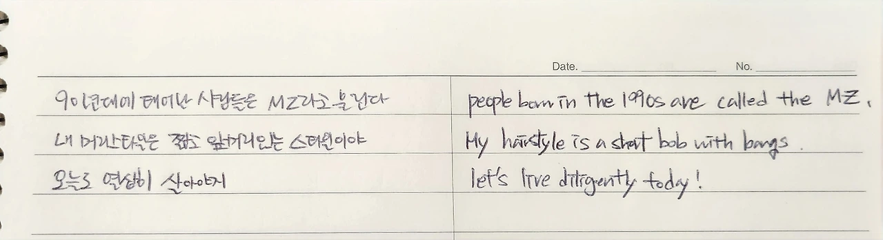 4. 수업이 끝난 후, 말하지 못한 문장들을 한국어와 영어로 노트에 적고 외운다.