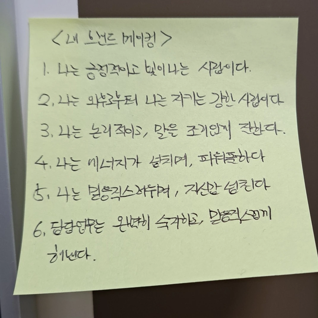 우선 내가 원하는 나의 모습을 적었다. 그리고 매일 아침 거울 속 내 얼굴을 보며 큰 소리로 외쳤다. 당당한 자세로 눈을 반짝이며!