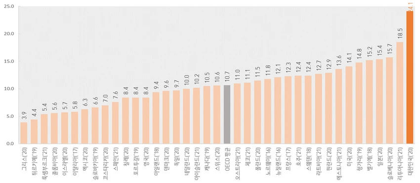 (출처 : 한국 자살률 10만명당 25명… OECD 평균의 2배, https://biz.sbs.co.kr/amp/article/20000168463)