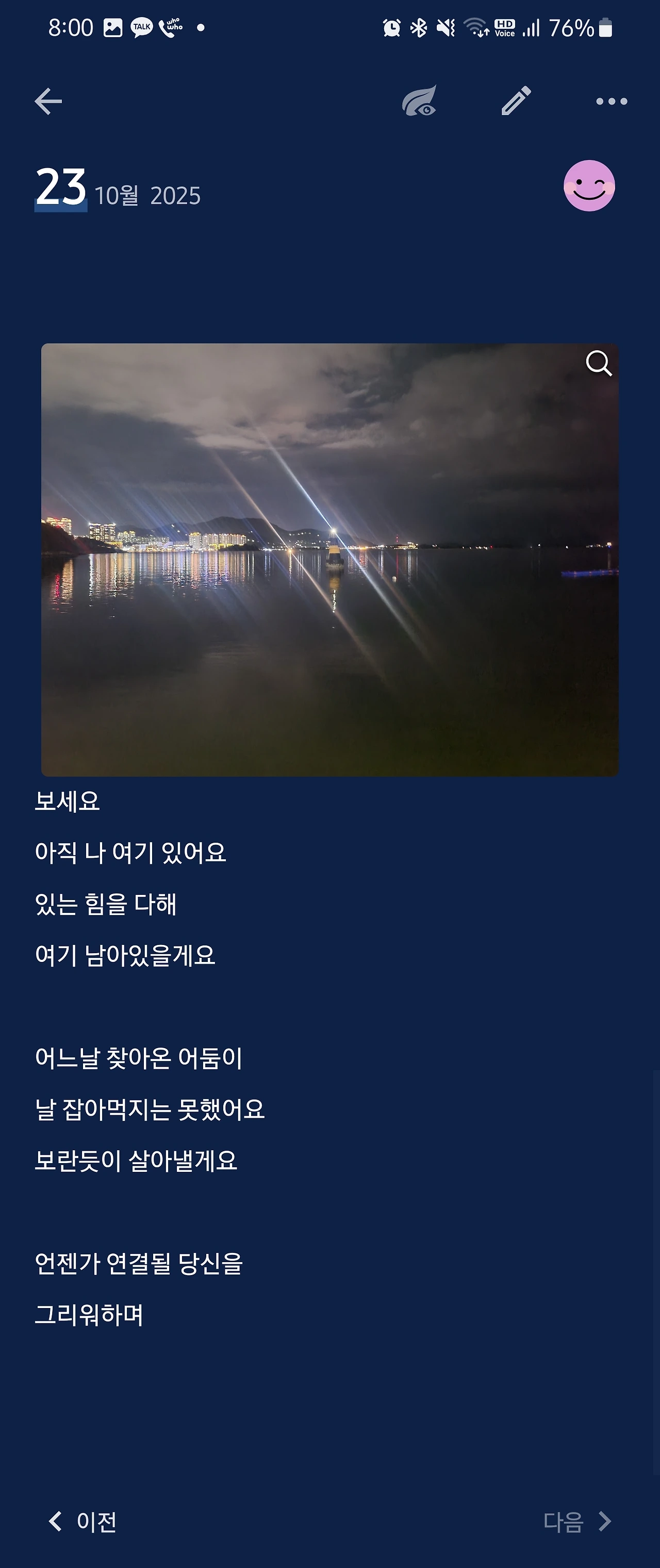 걸어온 길에 대한 이야기도 천천히 풀어갈게요. 과거에 이야기를 하다가 갑자기 현재로 훅 넘어오긴 했지만 아직 충분하게 풀어내지는 못했어요. 글을 적어 남기는 것은 나의 존엄성을 지키기 위한 행동입니다. 한때는 사랑을 쫒듯이 살아갔지만, 요새는 일상의 루틴을 지키고, 지나온 길을 돌아보며 사랑이 내 안에 이미 들어와 있는 것을 느낍니다. 앞으로는 내게 들어온 사랑에 의지해서 살아갈게요. 나는 계속 여기에 있어요.