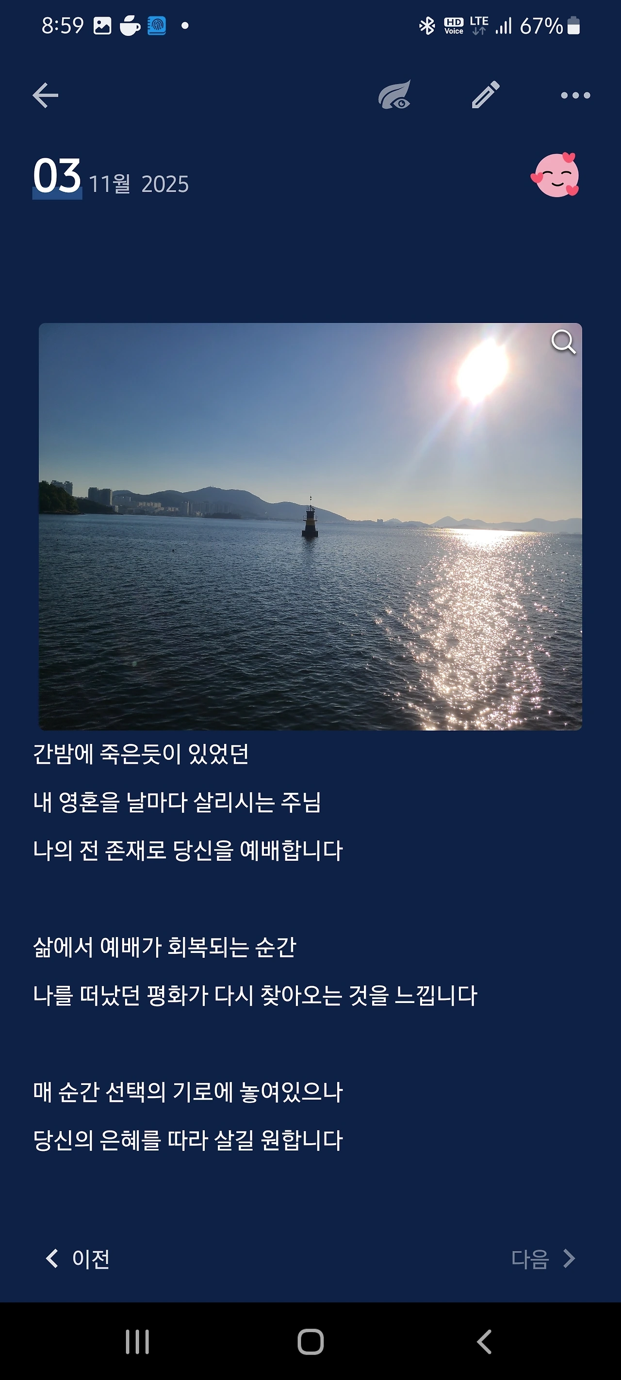 뇌과학적으로 보면/ 하루를 예배인 걷기로 시작하며 의도적으로 편도체를 꺼트리는 것이다. 전전두엽을 활성화하여, 뇌의 자가치유 능력이 있음을 말하는 신경가소성을 신뢰하기로 한 것이다.