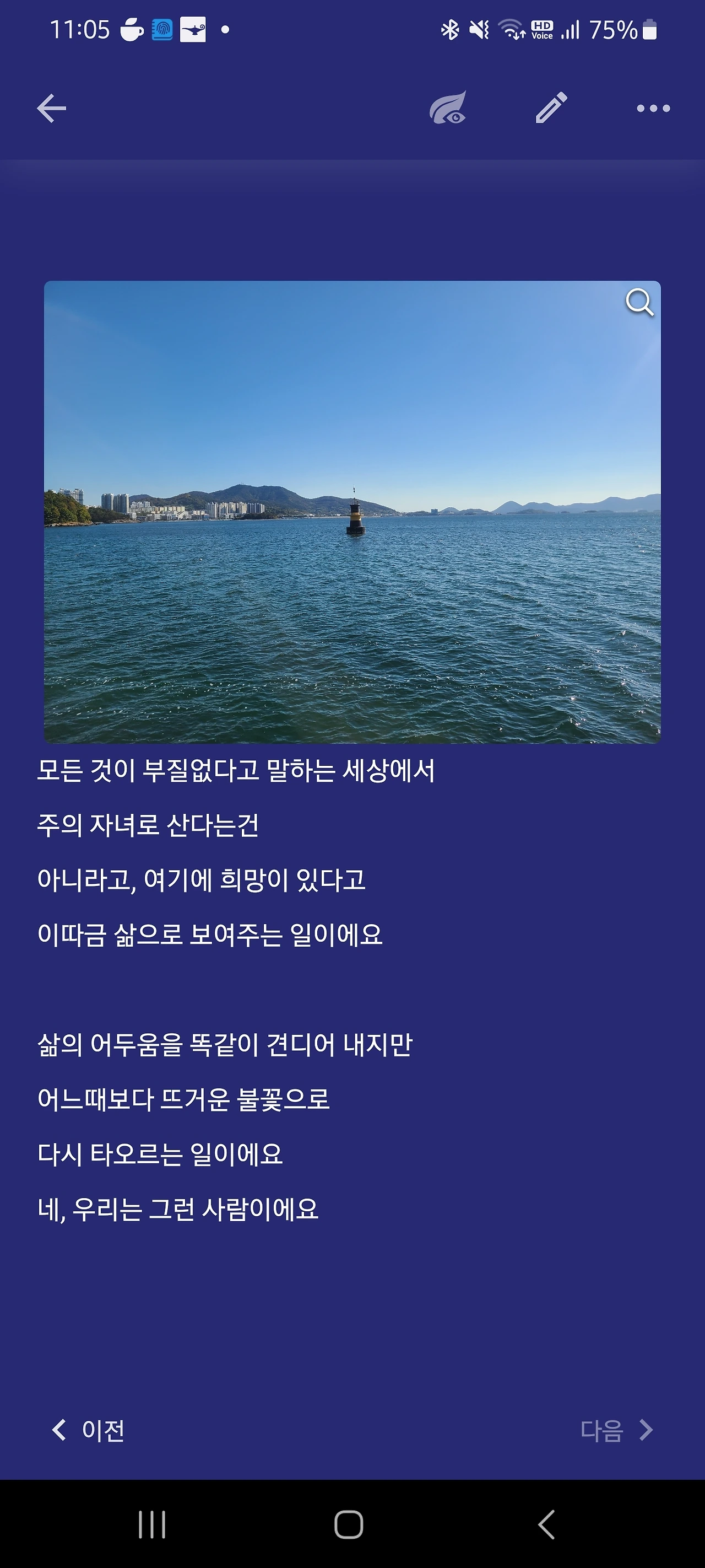 다시 한국으로 돌아와 체력이 눈에 띄게 좋아진 것을 느꼈다. 좋아진 체력을 바탕으로 아침에 일어나 2시간 걷기에 몰두했다. 걷기는 신을 향한 일종의 예배이자 기도였다. 하루를 열며 떠오르는 일출과 함께 내 존재를 다시금 확인하는 시간이었다. 내 시간이 마치 보너스로 얻은 시간이라고 여겨졌다. 나는 내가 살아갈 방법에 대해 나름대로의 연구를 하기 시작했고 그렇게 들어가고 싶던 글쓰기 모임에도 들어가 배움의 시간을 가졌다.