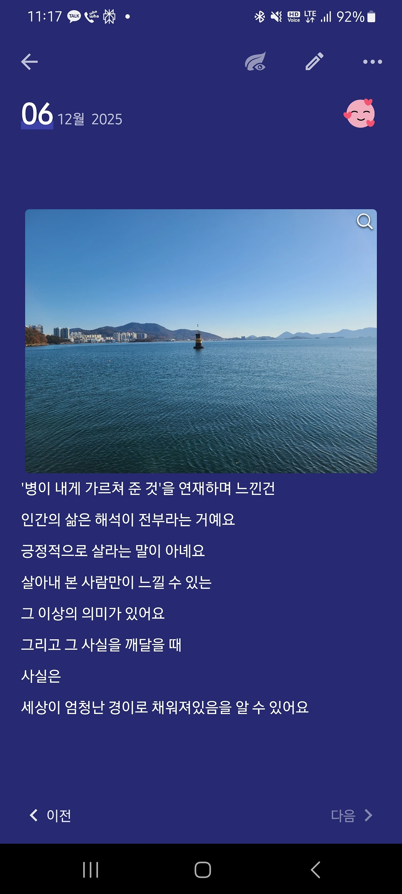 오늘로 ‘병이 가르쳐 준 것’ 연재를 마무리함에 기쁘게 생각한다. 연재하는 동안 지난 기억을 돌아볼 수 있어서 행복했고, 내가 얼마나 사랑받은 존재인지 깨닫게 된 시간이었다. 다시 살아갈 힘을 충만히 받은 시간이었다. 장애인 대상으로 KOICA 해외 봉사단을 다시 떠날 기회가 생겨 엊그제 면접을 보고 왔다. 따로 부르셔서, 봉사단으로 활동하려면 활동하는 데 문제없다는 의사 진단서가 필요하다 했다. 다음 병원 진료일은 내년 3월이라서 다음 차수에 지원하기로 했다. 그럴 수 있다고 생각했는데, 내심 실망을 했나 보다. 다시 모든 상황이 알 수 없게 되었다.