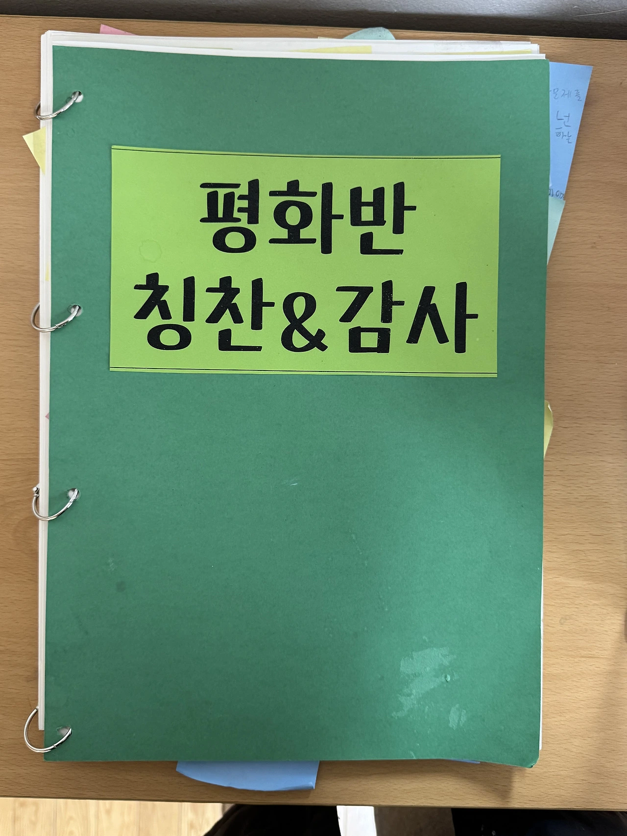 칭찬판이 가득 찼을 경우 그 주의 반장이 칭찬 쪽지를 떼어내어 우리 반 칭찬기록서에 가지런히 정리하여 붙인다. 칭찬판이 새로 바뀔 때마다 학급 온도계 1도와 믿음 열매 1개를 지급하는 서비스는 덤이다.