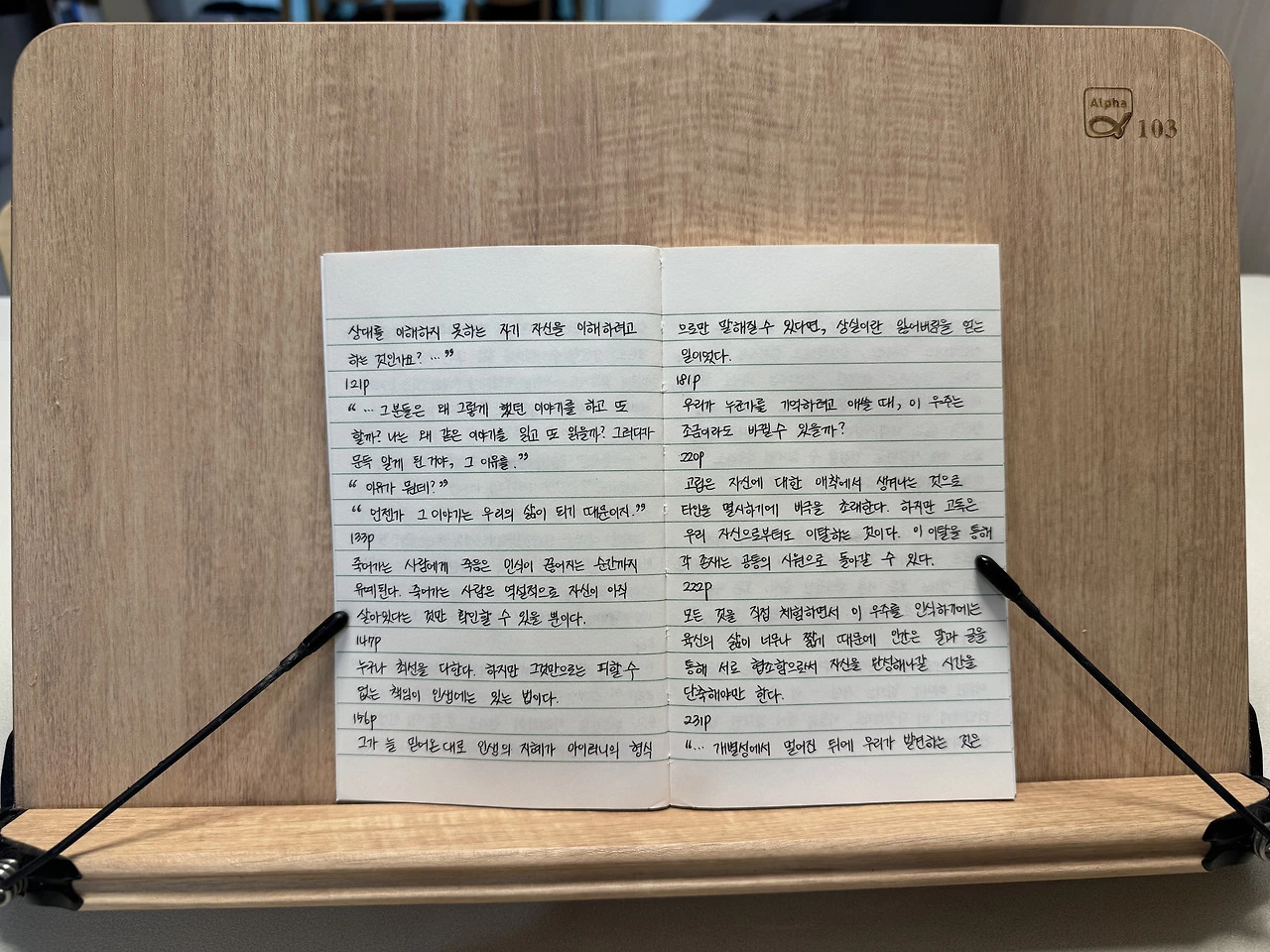 과거에서 현재를 찾지 말고 미래를 상상하며 현재를 살아가야 한다는 말. 20년 후의, 30년 후의 나를 떠올리며, 그때의 내가 나를 기다리고 있으니 지금의 나에게 더 정성을 들여야겠다는 생각을 한다. 어쨌든 나는 내가 충만해야 그다음을 채울 수 있는 사람이니까. 그래서 오늘 하루를 이렇게 보내고 있다는 자체에 감사하다. 이 평범한 날들이 모여서 가장 평범한 미래의 날이 될 테니까. 너무 평범하기 때문에 오히려 특별한 그날이.