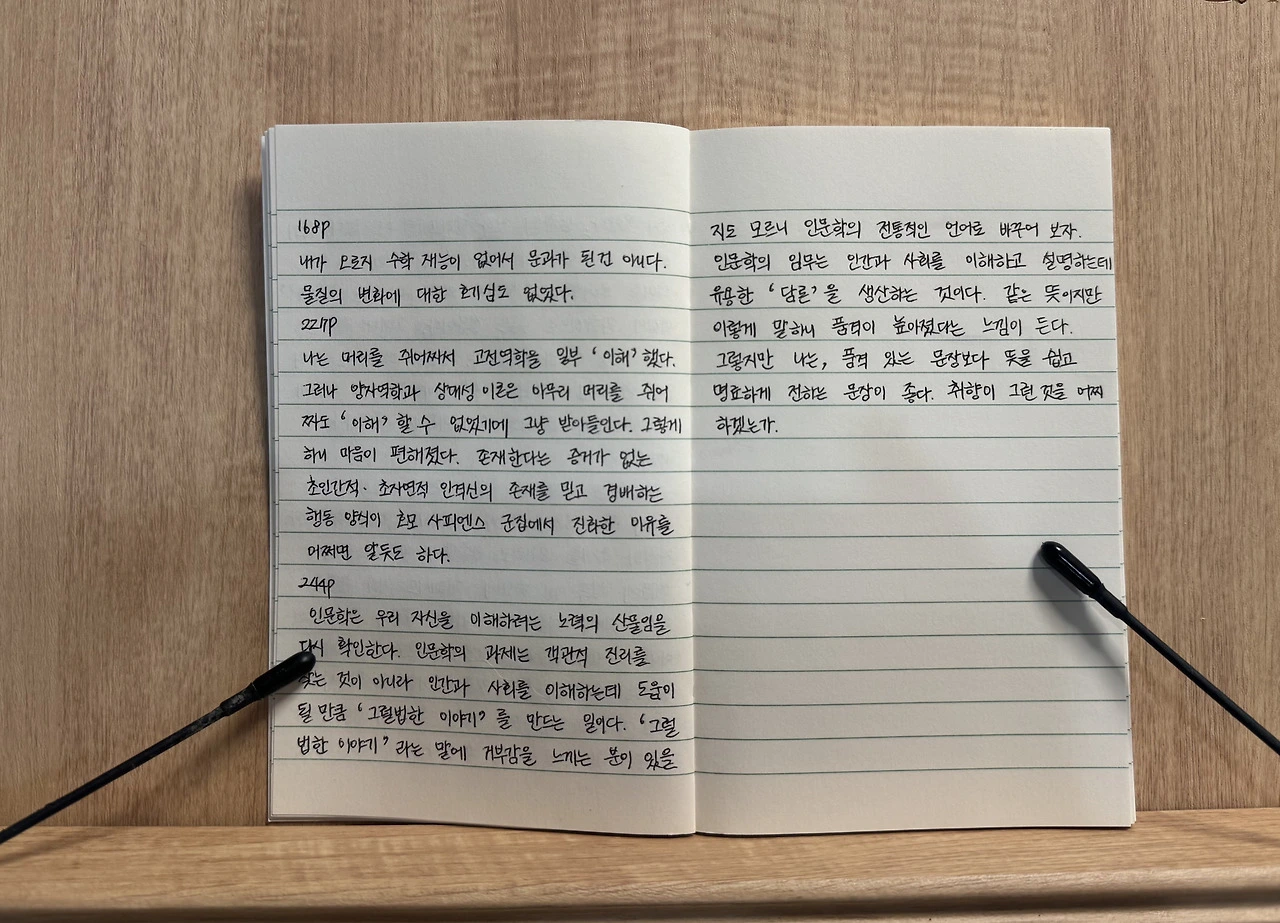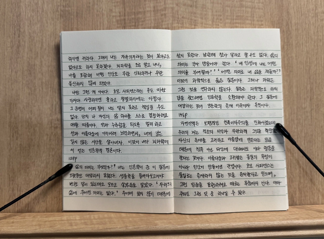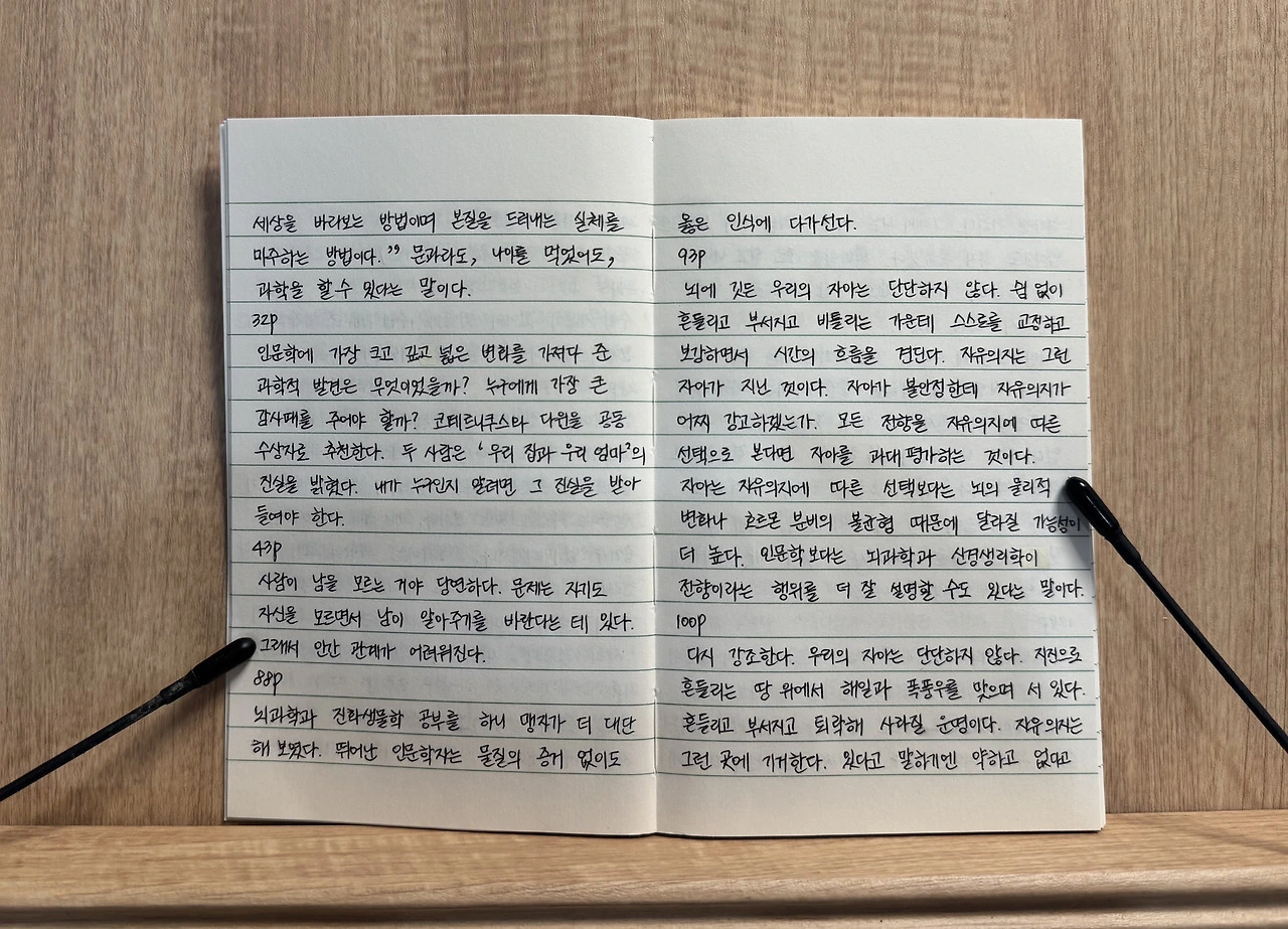 책을 다 읽고 나서 태깅해 두었던 문장들을 필사하는데, 하나같이 너무나 인문학적인 내용에만 줄을 그어 놓은 나를 발견하고 실소가 나왔다. 정리된 부분만 읽으면 과학 책을 읽었다는 것을 전혀 모를 정도였다. 작가님이 정성 들여 설명한 과학적 개념은 반쯤 졸면서 읽었다는 것을 인정한다. 대신 과학적 사실에서 도출해 낸 작가의 해석이나 접근은 눈을 반짝이며 읽었다. 이 정도는 되어야 운명적 문과라는 타이틀을 획득할 수 있는 것 아닐까? 아무래도 유시민 작가님은 조금 더 겸손하셔야 할 필요가 있을 것 같다.