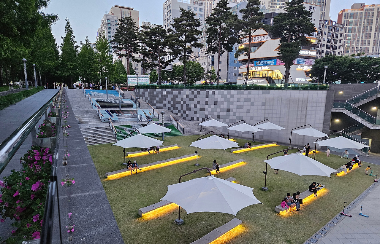 늦여름에서 초여름을 향하는 부산의 송상현 광장은 많은 것을 생각하게 만드는 힘이 있습니다. 복잡하고 바쁜 삶을 살아야 하는 현대인들에게 생각이라는 것은 거추장스럽고 불필요한 것이 되어버렸습니다. 오래 전 책을 덮었고, 시각과 청각을 중심으로 한 빠르고 자극적인 정보를 받아들이는데 모두가 익숙해지고 말았습니다. 게다가 요즘은 쇼츠라고 더 짧은 영상 정보가 지식 수집의 주요 통로가 되어버렸습니다. 바쁘고 힘든 삶이 모두를 그렇게 만든 것 같습니다. 그렇지만 생각의 힘은 늘 사람들을 나은 방향으로 나아가게 만듭니다. 조금 늦을 수는 있지만 다시 되돌아 나오는 수고를 줄일 수 있기 때문입니다. 송상현 광장은 생각의 힘을 키워주는 곳입니다. 시간과 공간을 초월해서 그러합니다.