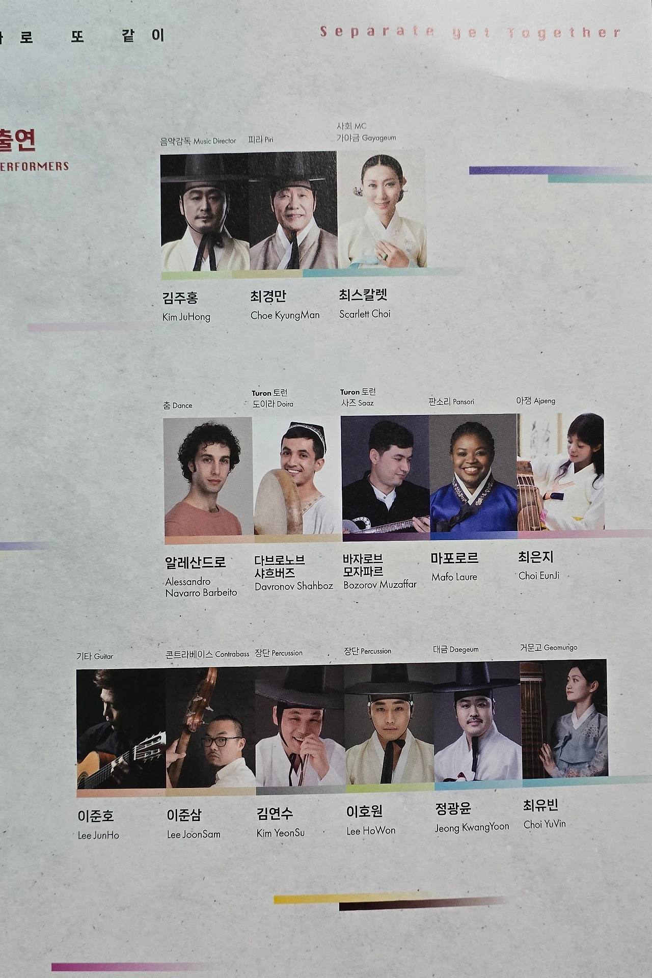노란 개나리색 치마에 하얀 저고리를 입은 흑인 여인이 등장했다. 워낙 본 적 없는 모습이라 눈이 휘둥그레했는데, 김일구류 아쟁산조를 능숙하게 연주하기 시작했다. '분명 최은지라고 했는데?' 옆에 앉은 유 선생은 나보다 정보가 있는지 카메룬 출신의 진도사람인 것으로 안다고 했다. 아마 남다른 가족 이야기가 있겠다 싶었지만, 눈 감고 감상했을 때 어떤 편견도 느껴지지 않았다. 멋있었다.
