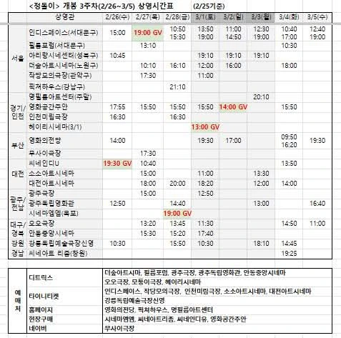 □ 정돌이 개봉관(2025년 2월 25일 기준)